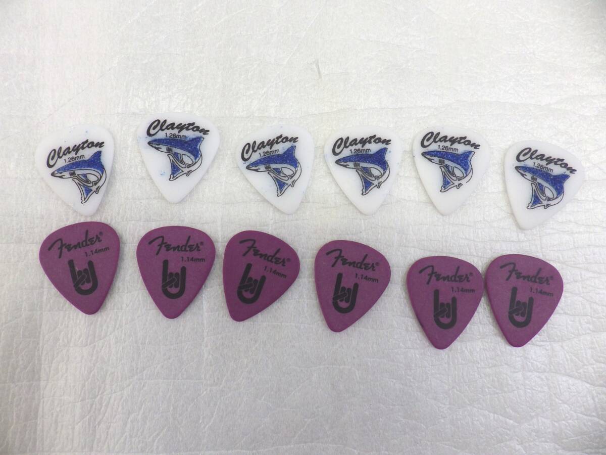 ギターピック合計12枚 フェンダーティアドロップ1.14mm 6枚 クレイトンティアドロップ1.26mm 6枚