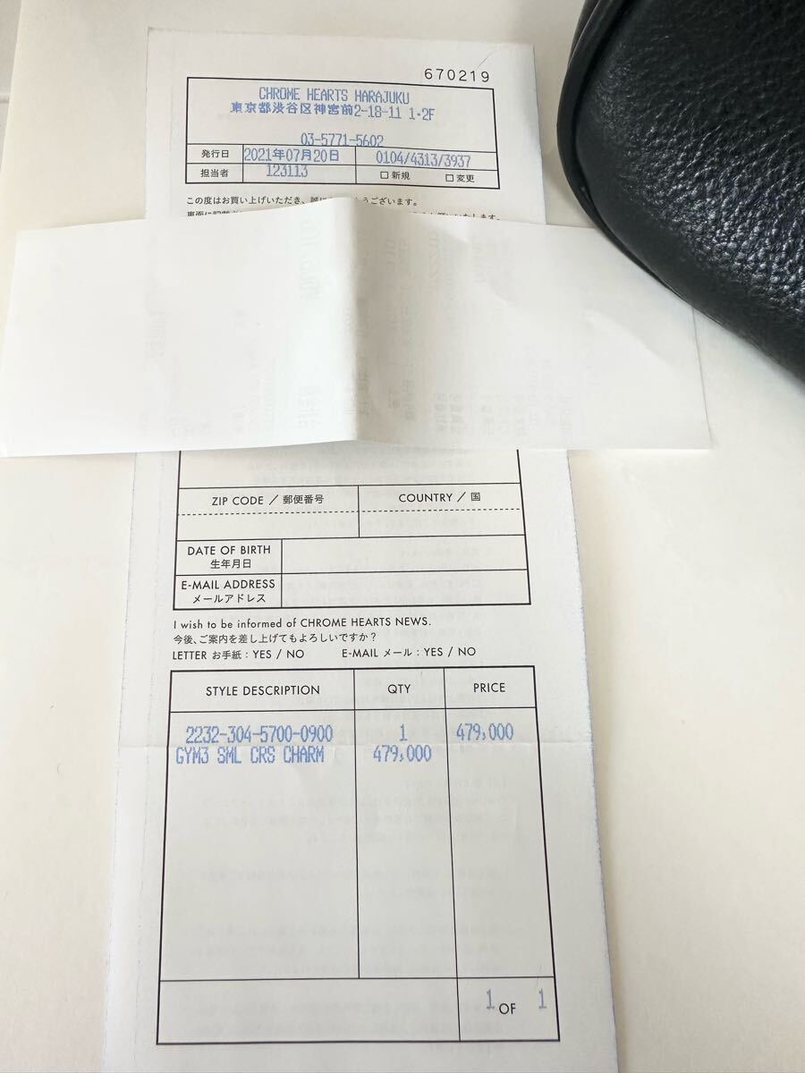 美品 正規店購入 クロムハーツ CHROME HEARTS GYM3 ジムバッグ スモール small 本革  レザー インボイス原本