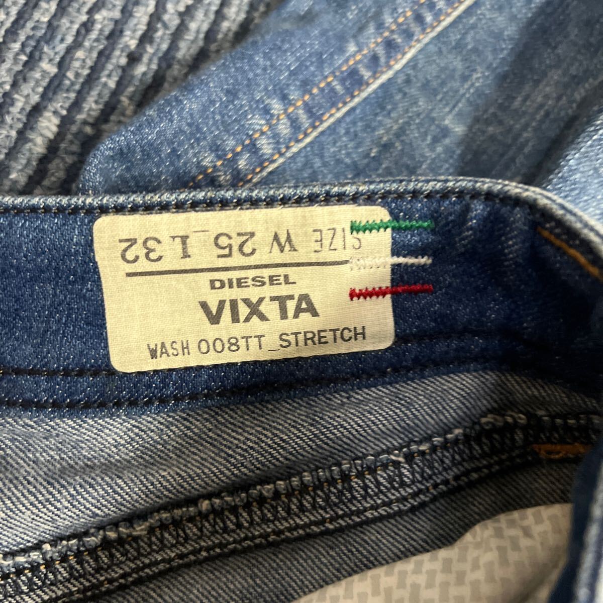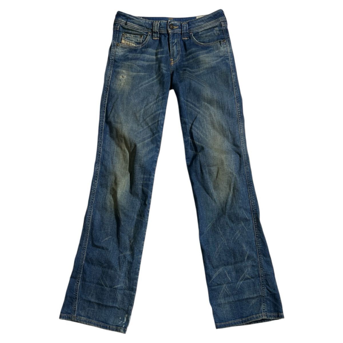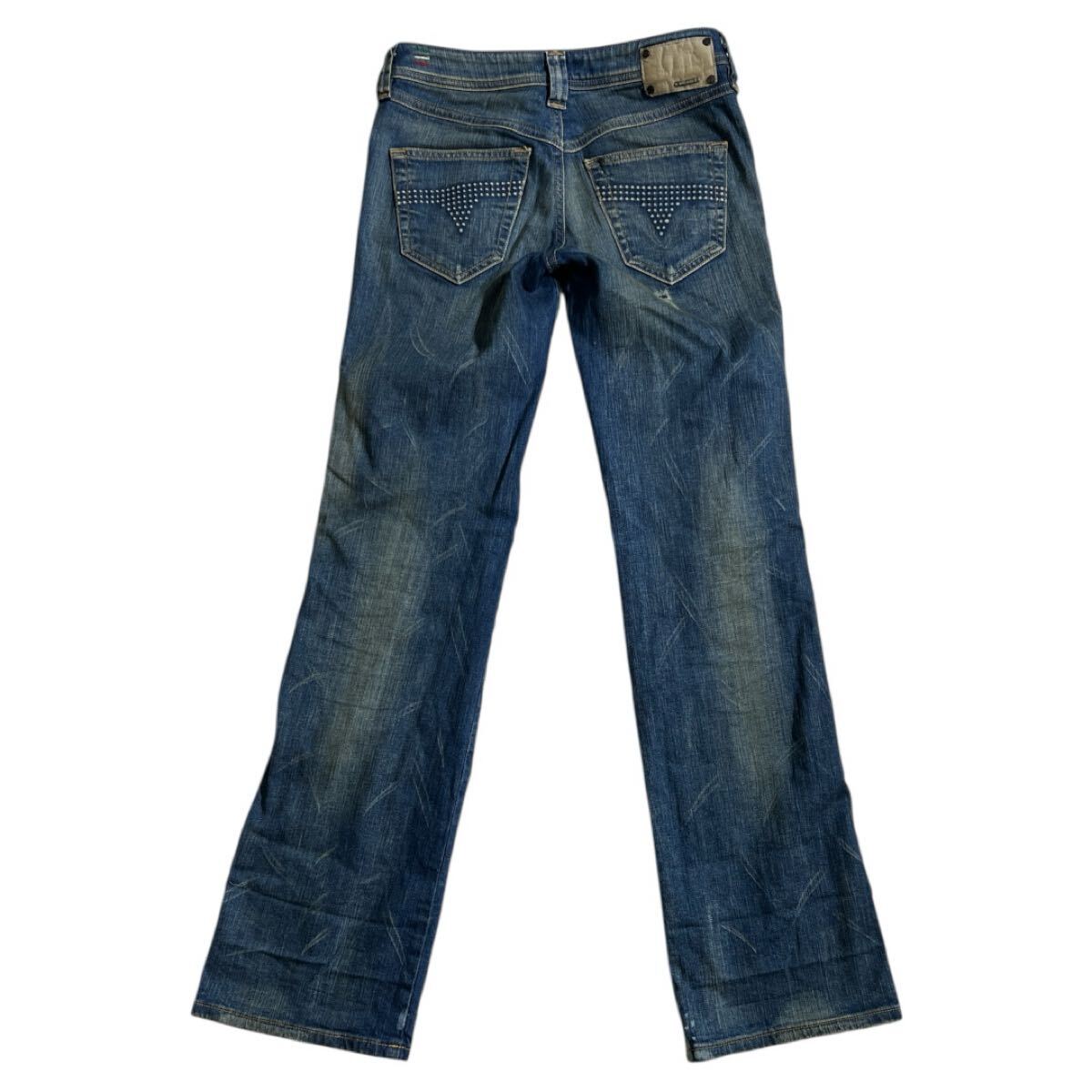 VIXTA ロゴ レザー パッチ ユーズド 色落ち ダメージ加工 ストレッチ ブーツカット デニムになり大変格好良くお洒落で格好いいです