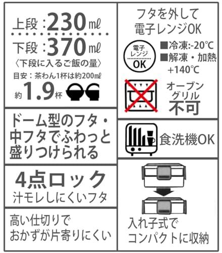 ・容量:600ml(上段230ml+下段370ml)/サイズ:幅16.9×奥行10×高さ9cm/生産国:日本