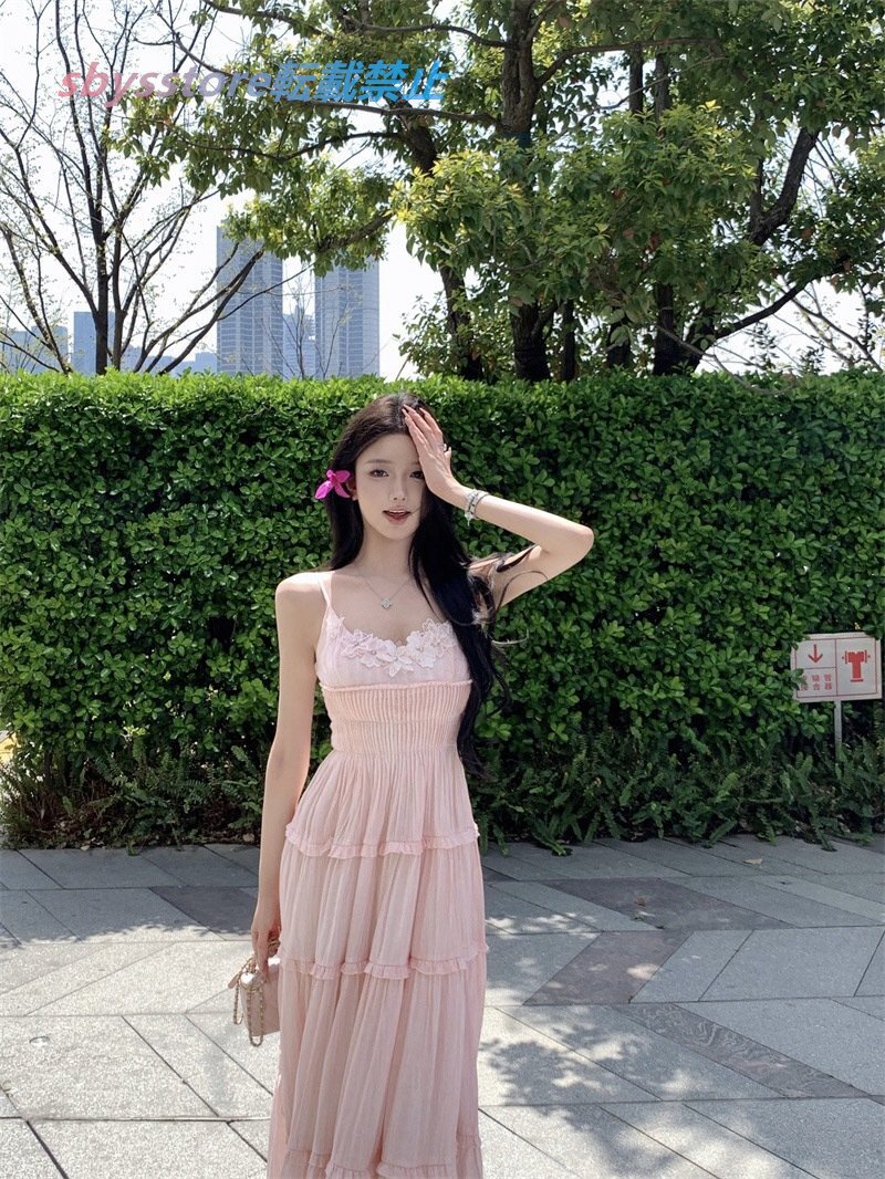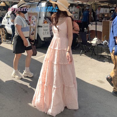 2025年夏新作 気質漂うゴッホ風デザイン Vネックキャミワンピース 春夏バカンスドレス レディース