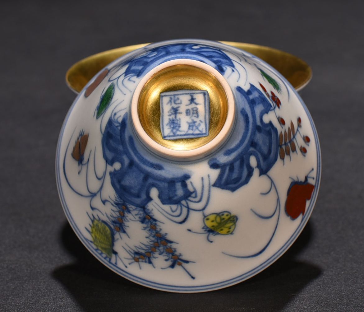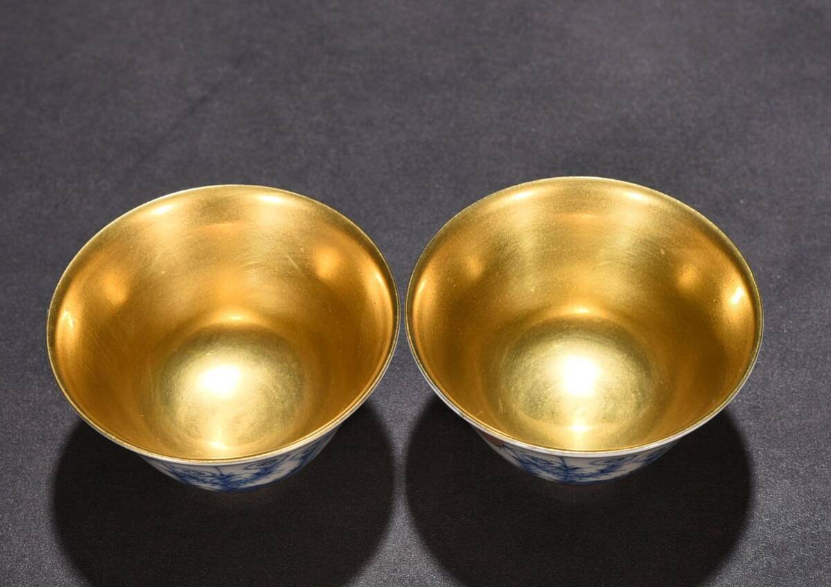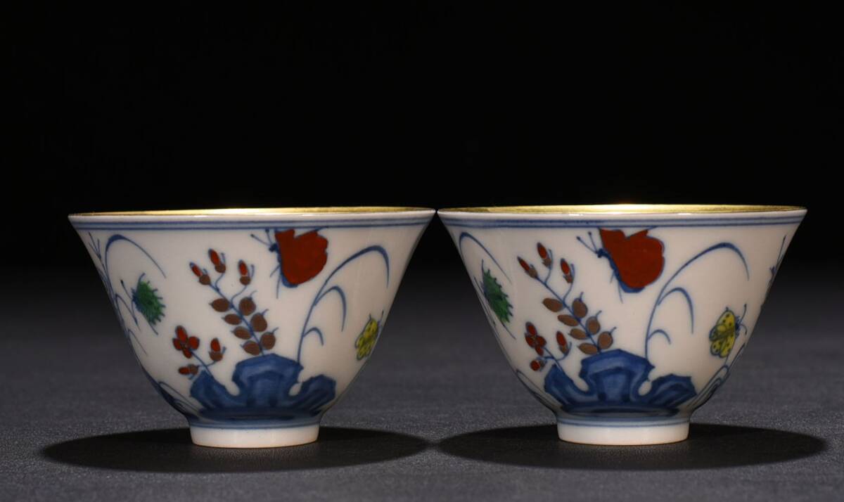 商品名 ■TM115■大明成化年制銘 闘彩 流金三秋杯一対 時代物 古玩 唐物 古陶磁器■