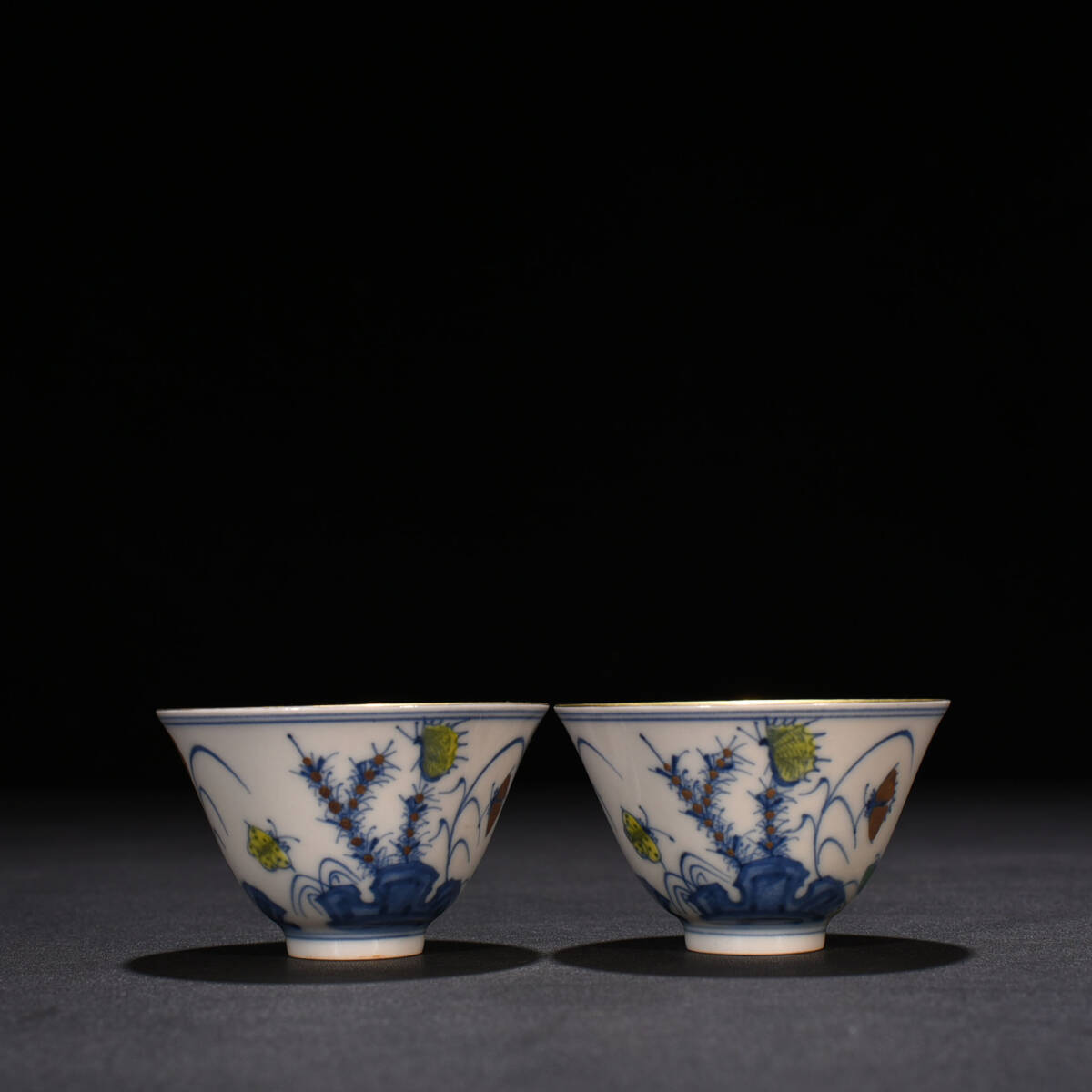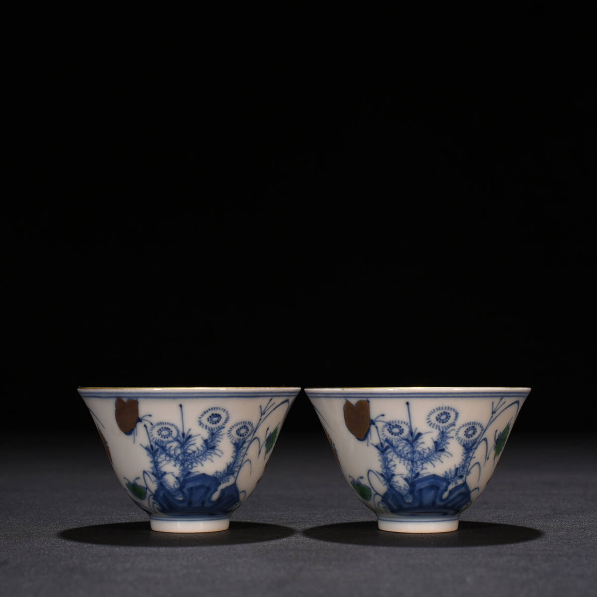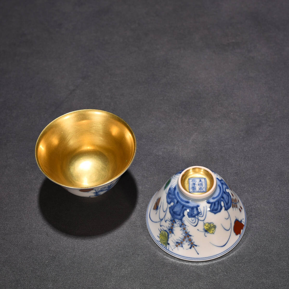 商品名 ■TM115■大明成化年制銘 闘彩 流金三秋杯一対 時代物 古玩 唐物 古陶磁器■