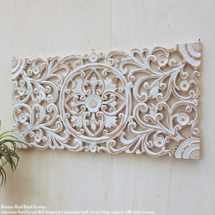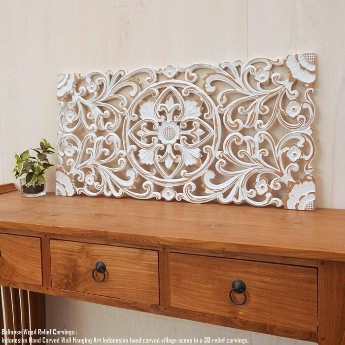 インドネシアの職人が1点ずつ手彫りしたレリーフです。裏面にフックが付いているので、壁に掛けることができます。美しい蔓の中にお花が散りばめられた、ナチュラルな印象のデザイン。アジアンな雰囲気はもちろん、モダンなインテリアにもマッチします。お部屋がとても華やかになりますよ!※ハンドメイドの為、同じ製品でも色味やデザインなどに多少違いがございます。予めご了承ください。■幅:40cm × 奥行:1cm × 高さ:80cm ※多少の計測誤差はお許しください。■素材:MDF■カラー:ホワイトウォッシュ■原産地:インドネシア・バリ島※【MDFとは】木質繊維を原料とする成型板の一種で、 木材の様に軽量で高い加工性を持ち、材質が均質で表面が硬く、木材特有の反りや乾燥割れなどの癖が少ない素材です。