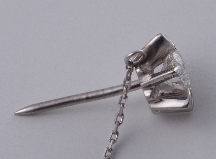 コメント | [[全ての商品に品質保証カードが付きますのでご安心ください]] 0.318カラットの透明感と輝きがある綺麗なダイアを使ったタイピンです。 鑑定士からの報告では、カラーが H ,クラリティが V S-2 、カットは Very Good の高評価でした。 これだけのスペックを持ったダイアはさすがに綺麗ですね。ピン部分には少しキズやピンの曲がりがありますが、これを磨き上げてピカピカにすると抜けやすくなりますので、現状で出品します。 |