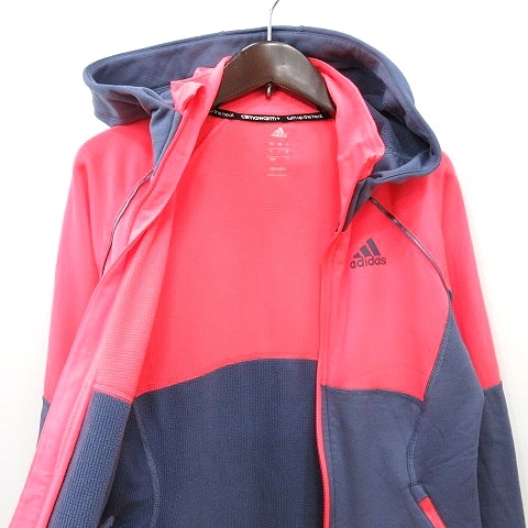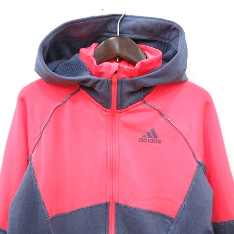 アディダス adidas パーカー ジップアップ 裏起毛 ロゴプリント バイカラー L ピンク グレー /MN レディース