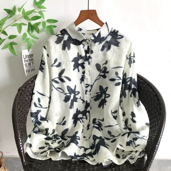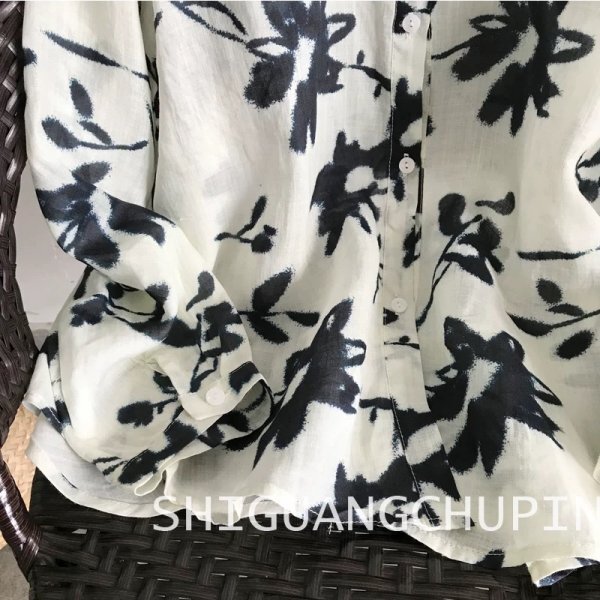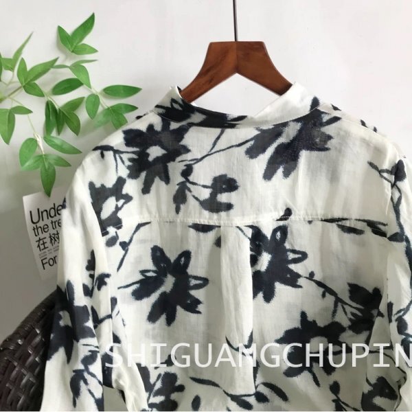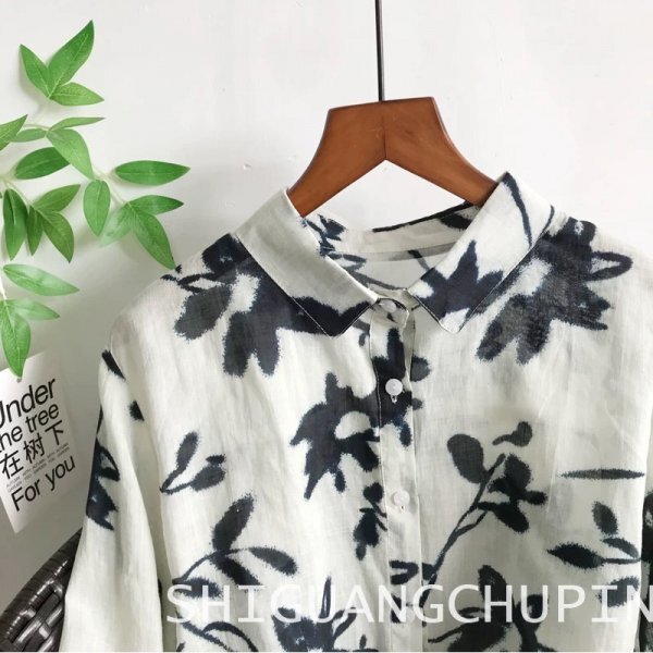 sg プリント花柄 フリーサイズ ワイシャツ チュニック トップス 麻100% 大人可愛 ナチュラル 花柄165