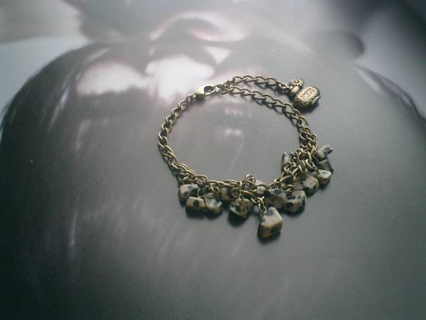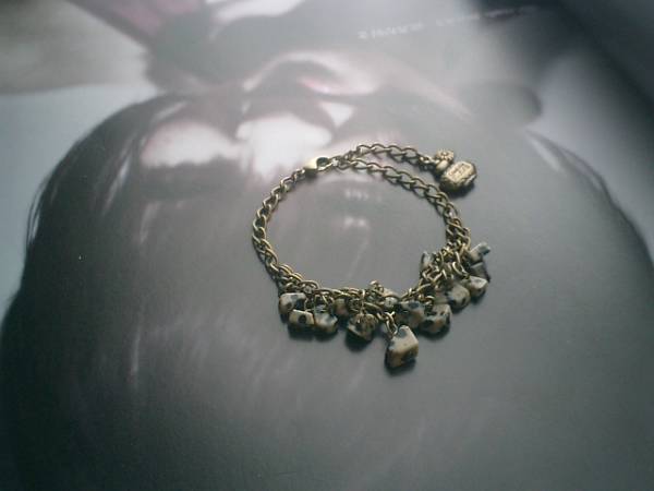 カワイイと可愛いの間に・・シリーズです♪ダルメシアンのブレスレットです♪♪♪ダルメシアンジャスパーのさざれは2連のチェーンに紡いでシックモダンな表情です♪長さは全長23センチ位で調節自由です♪お揃いのブレスレットやネックレスやピアスも出品しています♪♪シンプルで飽きのこないいつまでも着けられるデザインを考えて作りました!ハンドメイドをご理解頂いてノークレーム、ノーリターンでお願いします