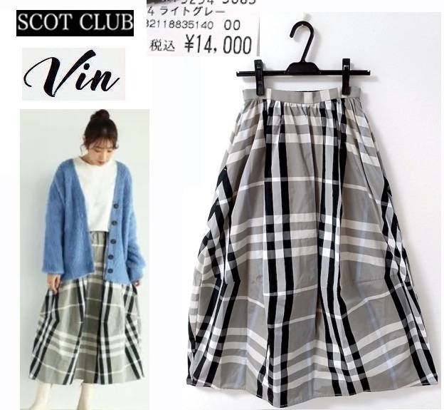 | 【新品14000円 スコットクラブ vin チェック タフタ スカート フレア 9号】 | |||