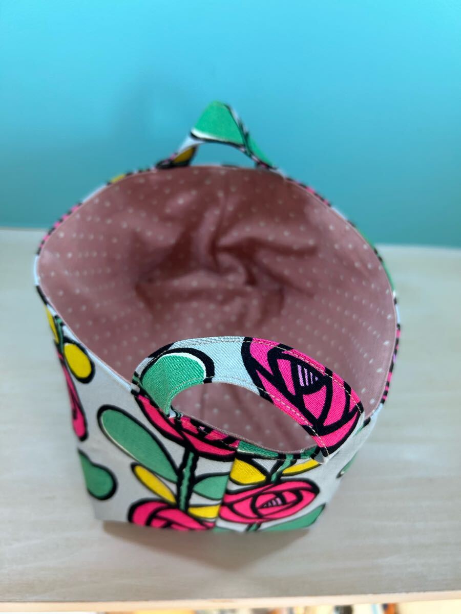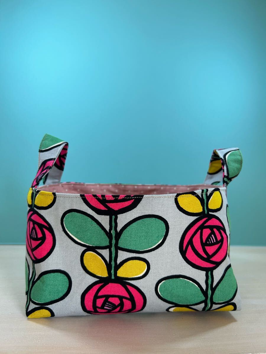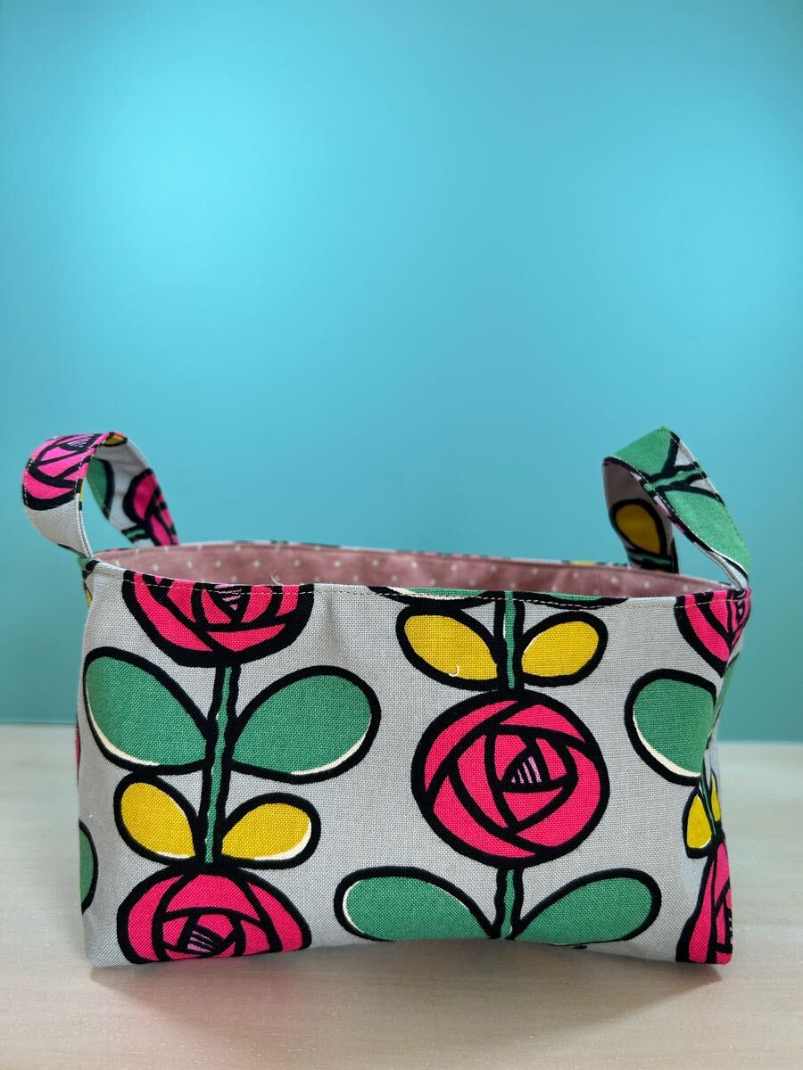ハンドメイド☆布バスケット グレー ばら バラ 北欧