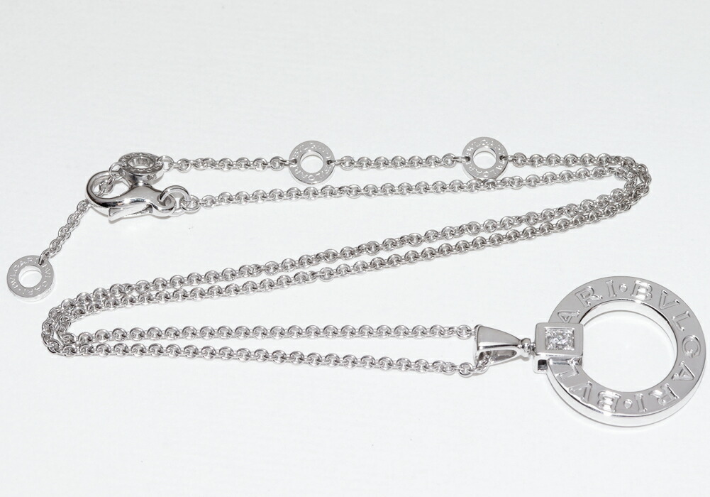 ブルガリ ペンダントネックレス K18WG ダイヤ1P ブルガリブルガリ サークルロゴネックレス 342074 CL854251