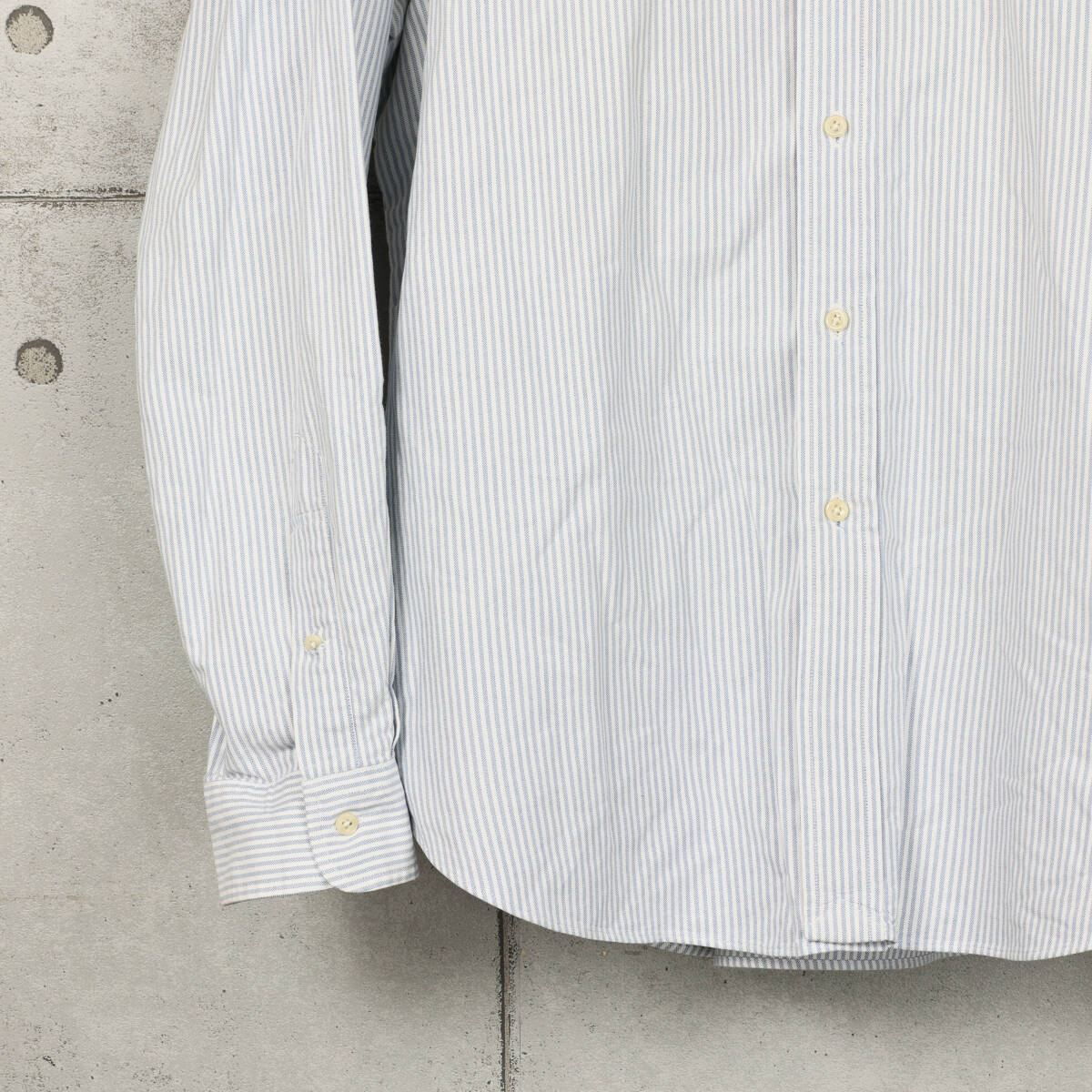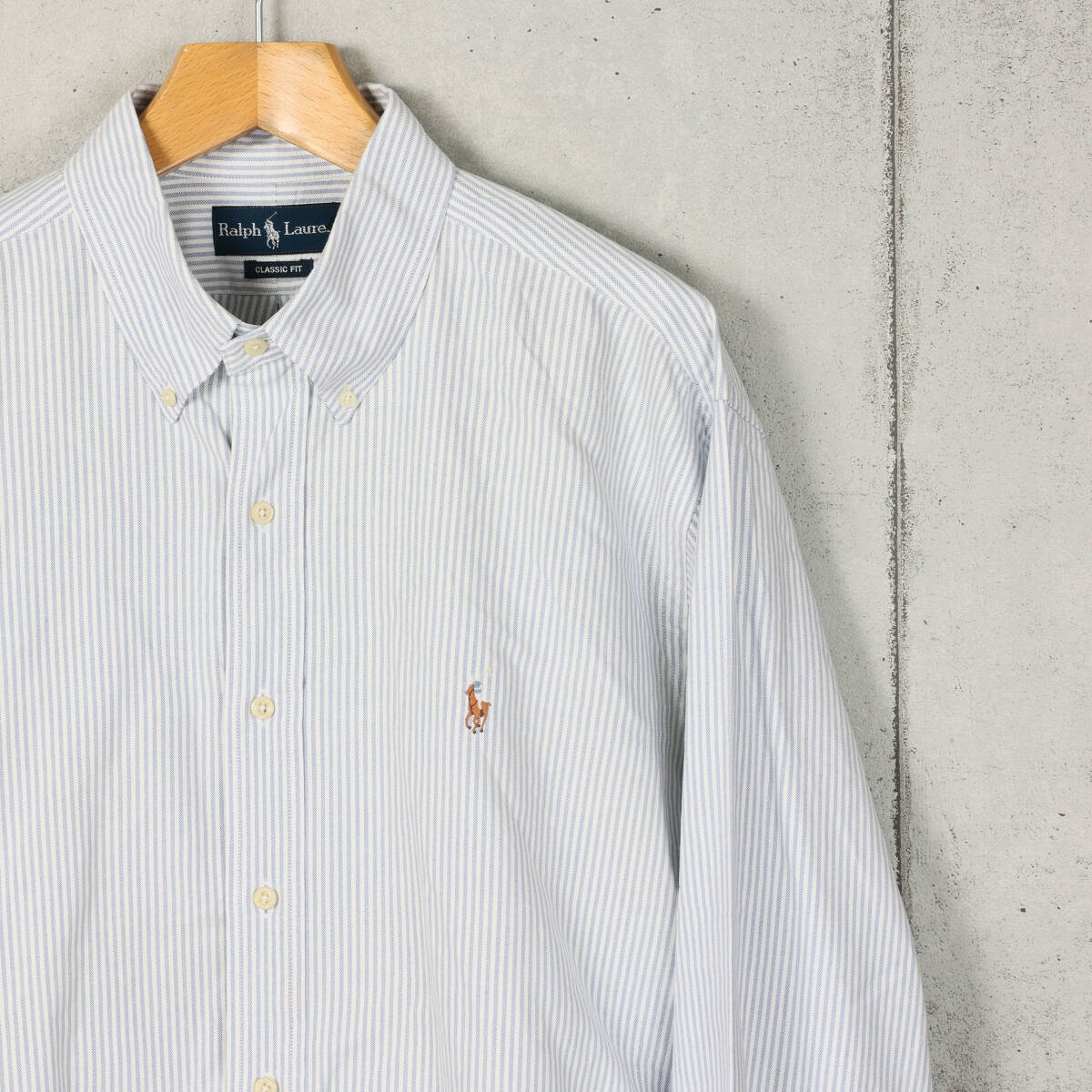 | 【ブランド】 Polo Ralph Lauren / ポロラルフローレン 【アイテム】 CLASSIC FIT オックスフォード ストライプ ボタンダウンシャツ 【商品説明】 アメリカで購入しました、ラルフローレンのオックスフォード素材が使用されたストライプ柄のボタンダウンシャツになります。 【カラー】 ブルー×ホワイト 【コンディション】 使用に伴う色落ちや擦れなどがあります。 【サイズ】 サイズ:XL 身幅:68cm 肩幅:53cm 着丈:84cm 袖丈:69cm | |||