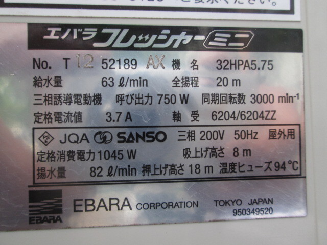 I-1 エバラ 浅井戸ポンプ 32HPA5.75 3相 中古