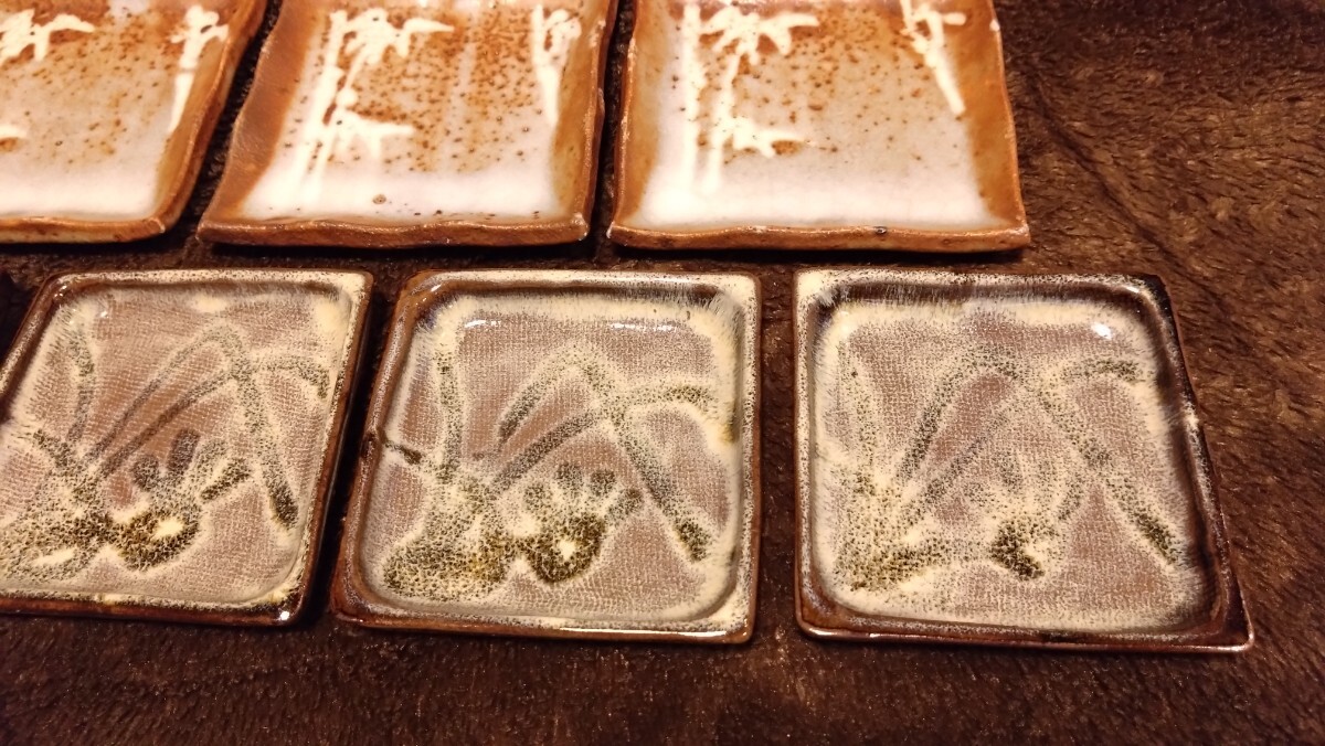 古志野 志野焼 京焼 角皿 菓子皿 2種 7客になります。