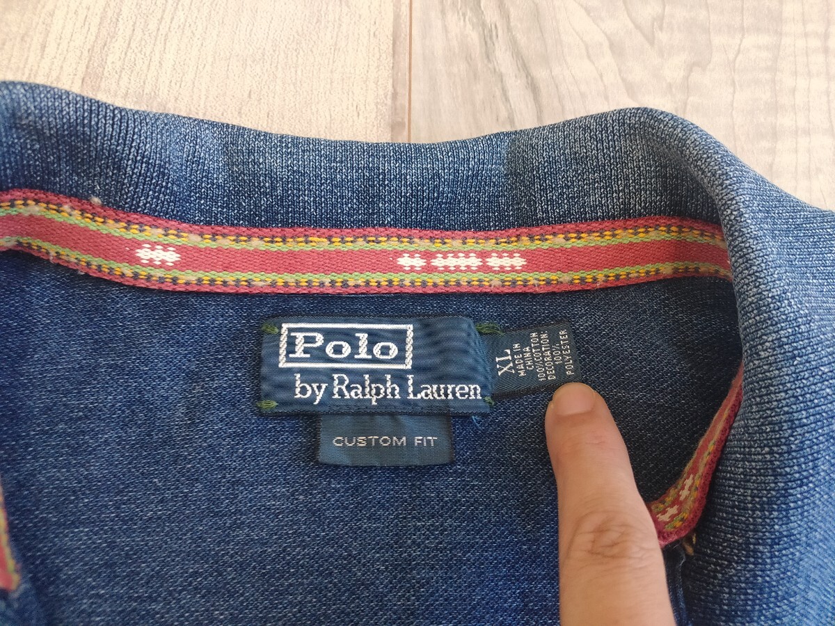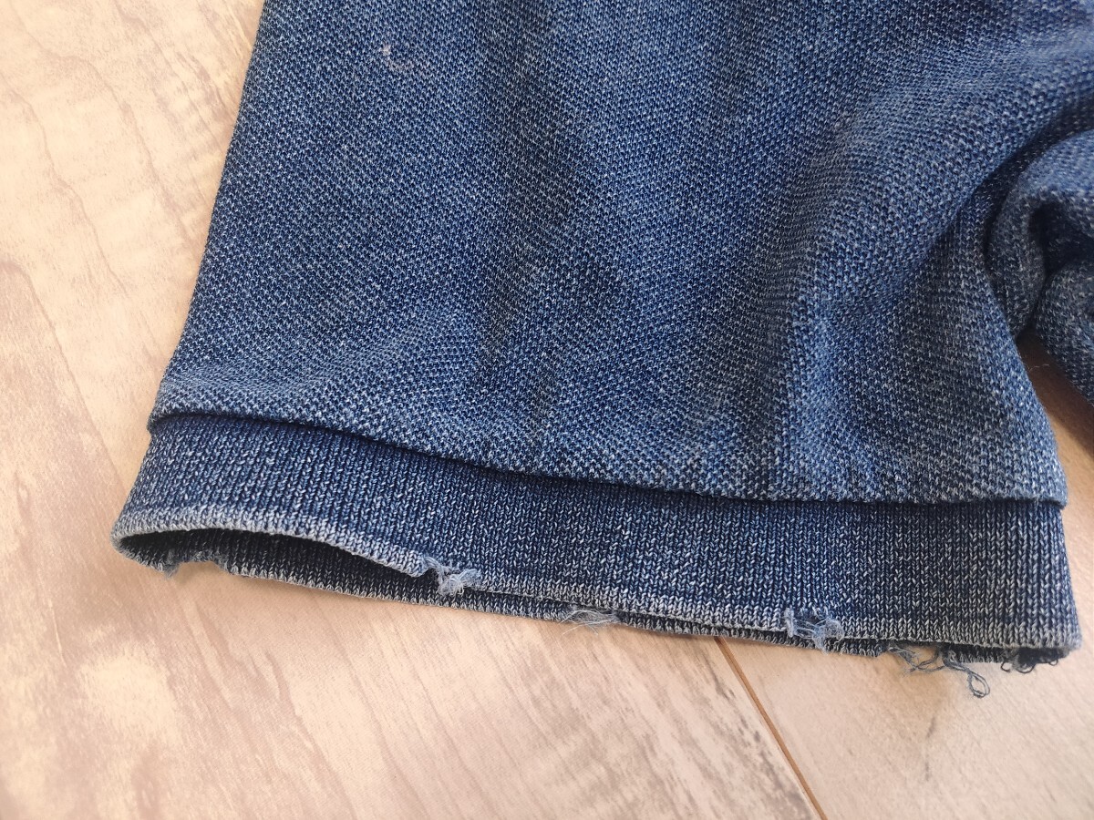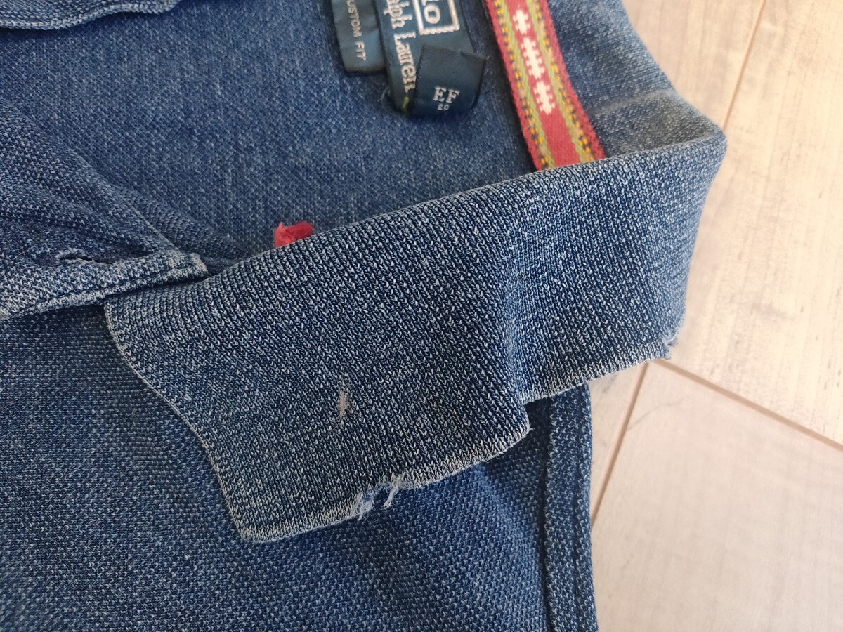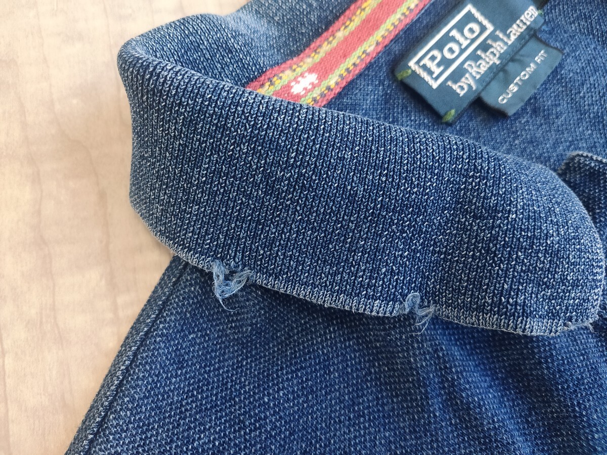 ラルフローレンのインディゴ染めのポロシャツです。素材は100%コットンです。胸元にUSMCの龍の刺繍が施されています。2000年代初頭のモデルです。