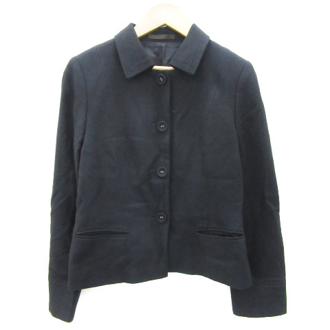 ポールスチュアート PAUL STUART ステンカラージャケット ミドル丈 総裏地 シルク混 6 M ネイビー 紺 /YM7 レディース