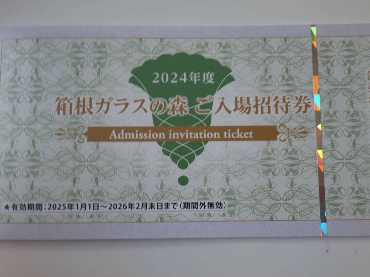 箱根ガラスの森美術館 入場券 チケット 3枚です。 詳細は画像をご覧ください。 画像は1枚ですが、3枚セットです。 有効期限は2026年2月末日まで。 (郵便事故の補償は当方では致しかねます。ご了承願います。)