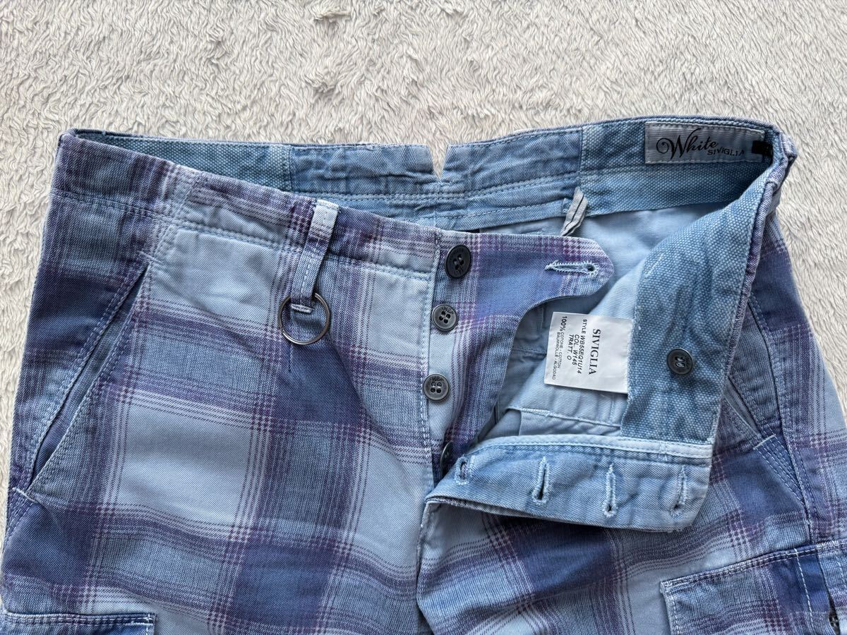 SIVIGLIA size30 ショートパンツ 軍パン ミリタリーパンツ カーゴパンツ カーゴショーツ シヴィリア メンズ チェック 格子 みずいろ ブルー