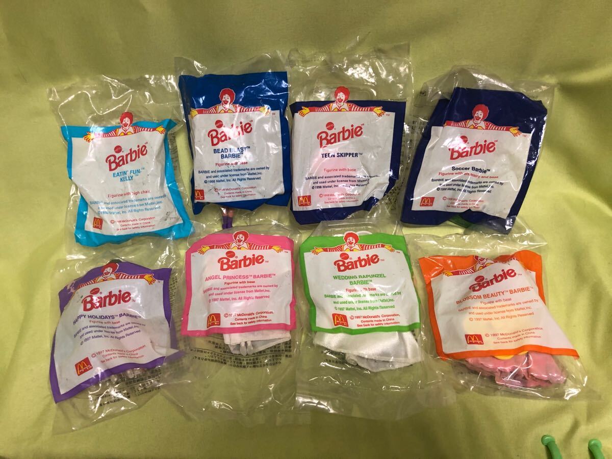 マクドナルドハッピーセット!8体のバービー人形が未開封セット。未開封ですが、TEEN SKIPPERとBEAD BLAST BARBIEのパッケージが破けている部分があります。
