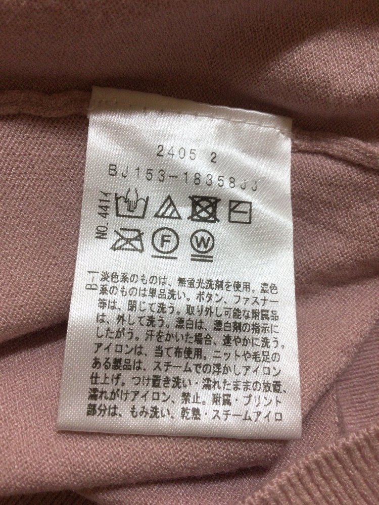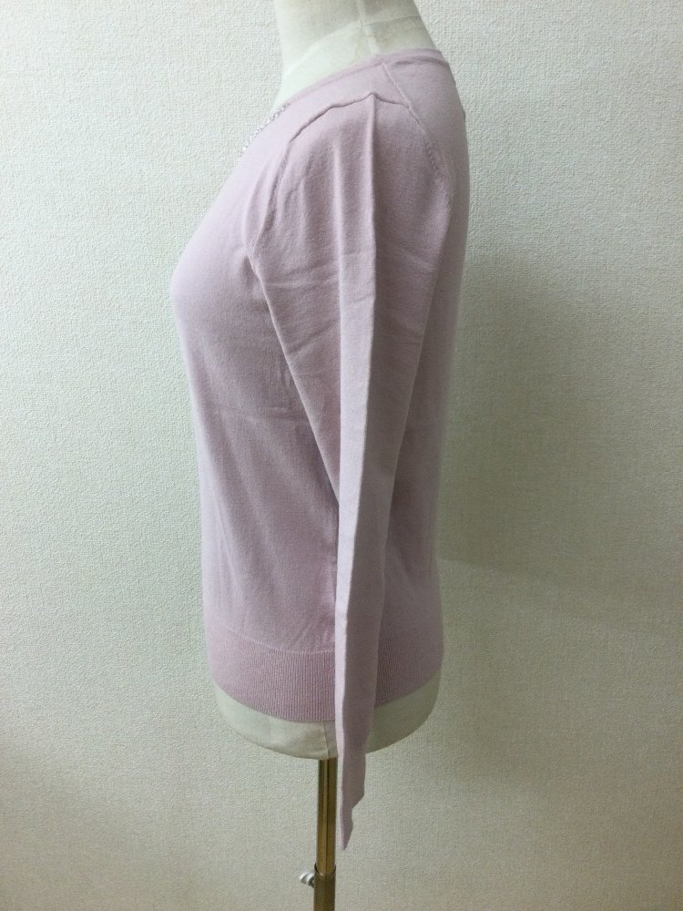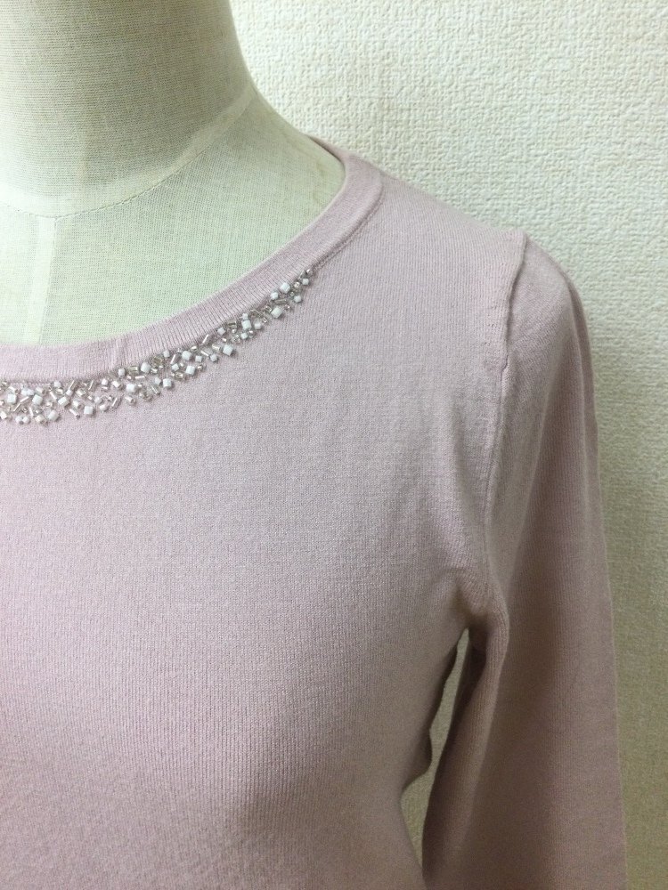管理番号:10^133257 アンタイトル 薄ピンクニット ストレッチ 首元ビーズ 表示サイズ:2 実寸(参考)
