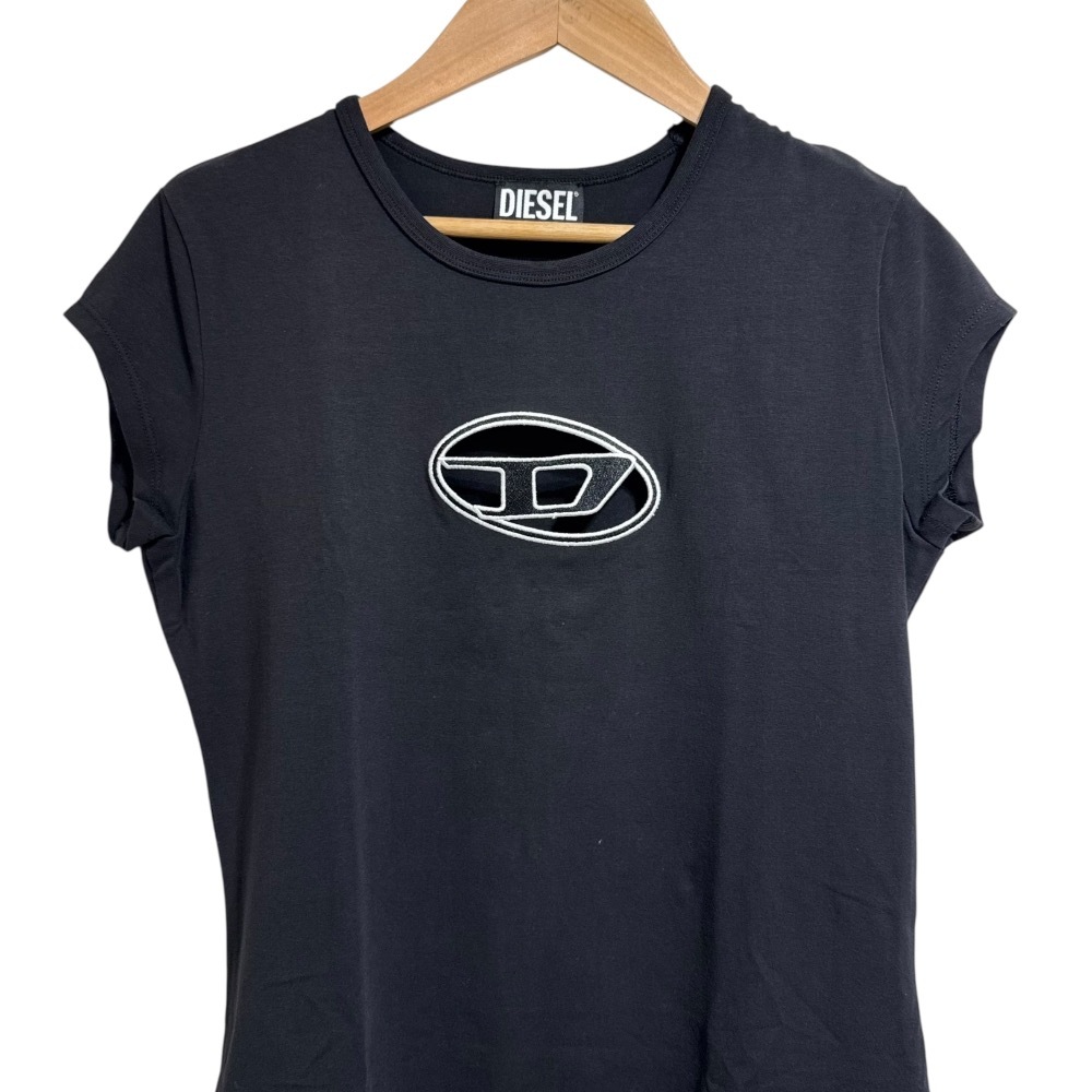 美品 DIESEL ディーゼル D-ANGIEL 半袖 ひざ丈 カットソーワンピース サイズM ブラック