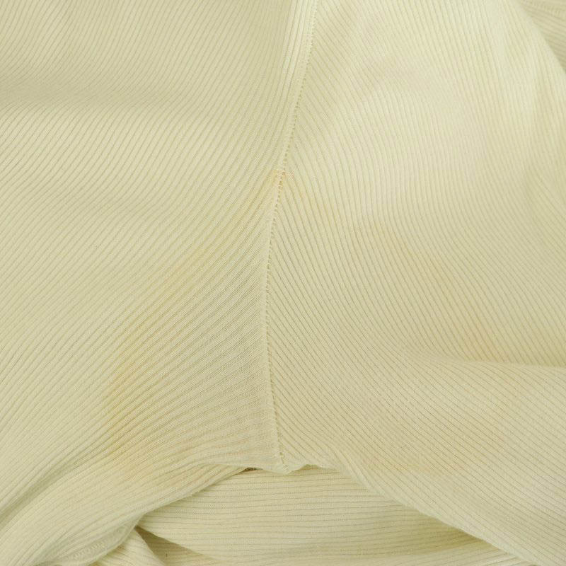 【状態】脇にシミ、首まわり、袖口に黄ばみがありますが、その他に目立ったダメージはなく、問題なくご使用いただける商品です。 ※あくまでも中古品ですので掲載写真や記載内容をご確認いただき、ご理解の上ご購入ください。