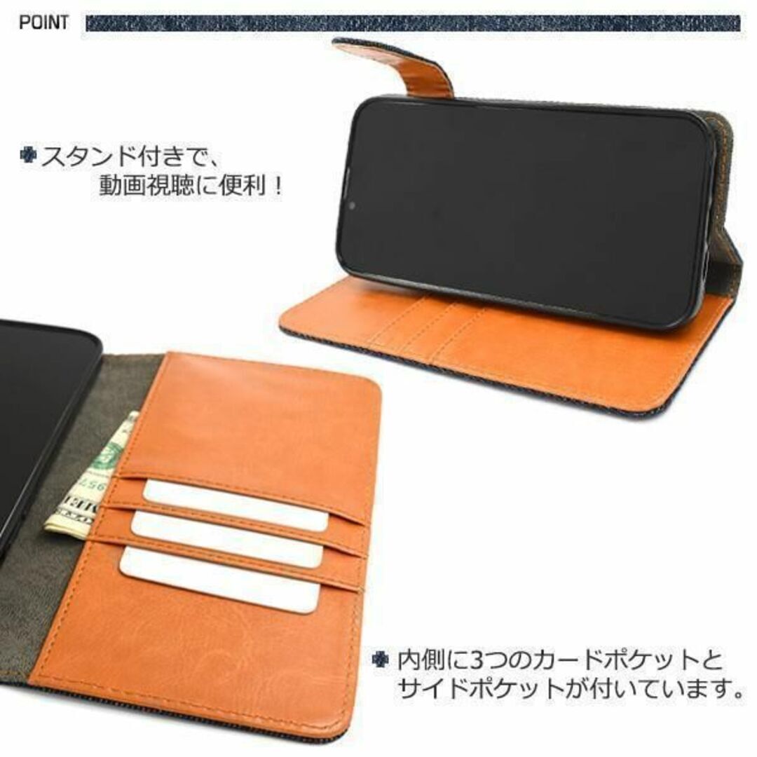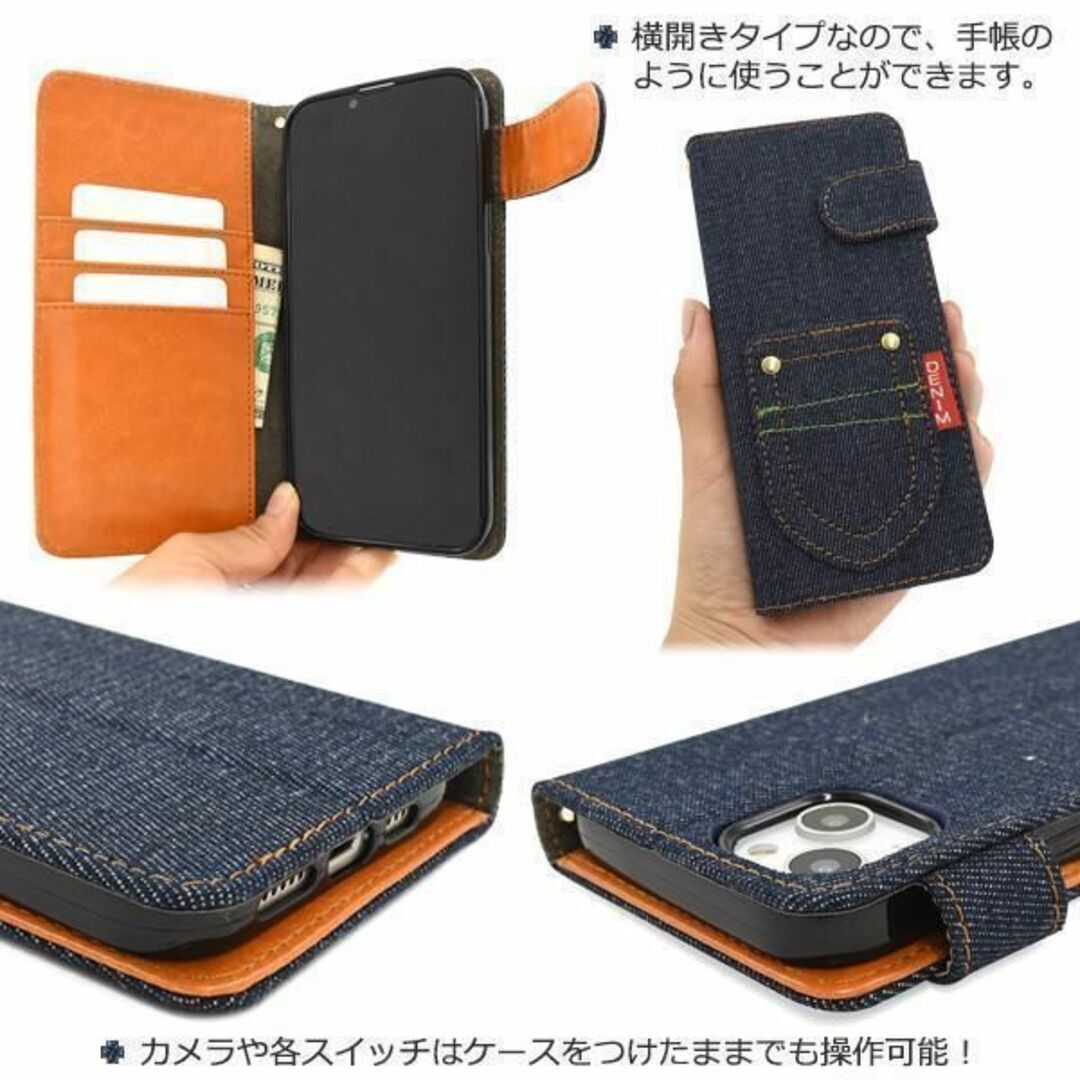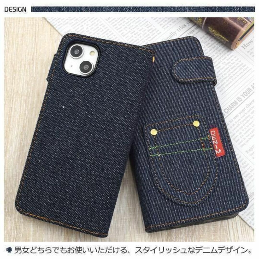 デニムデザインの手帳型ケース。