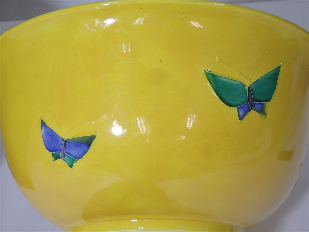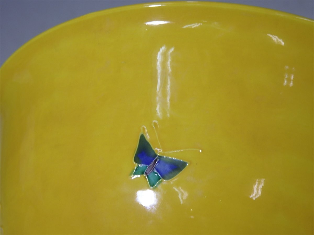 ★清水焼 洸春窯【黄交趾菓子鉢 共箱】蝶々 平安 洸春造 状態良好! 直径20.5×高さ9.8cm セール! 茶道具 京焼 茶器