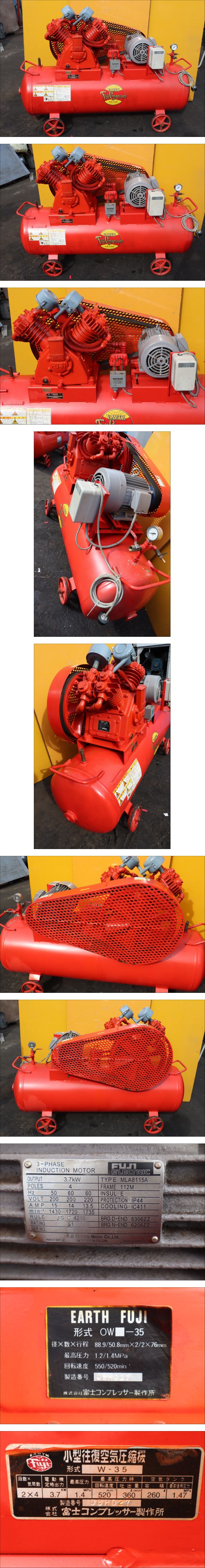 | EARTH FUJI エアーコンプレッサー OW-35 3.7kW(5馬力)三相200V タンク260L 整備点検済 動作確認済 即決価格 | ||