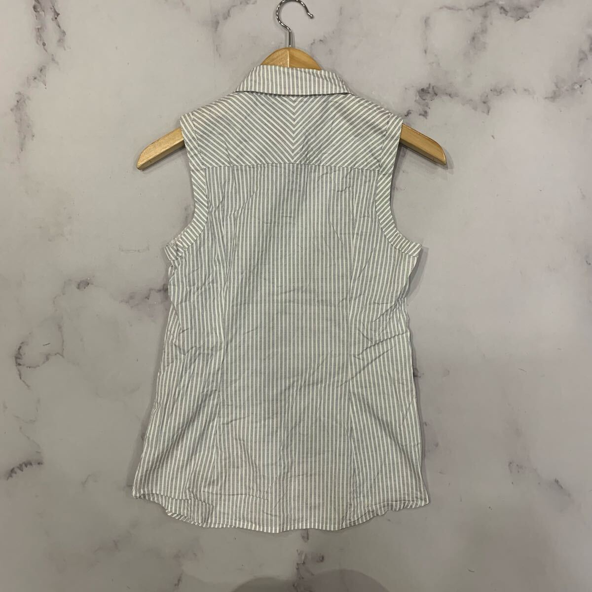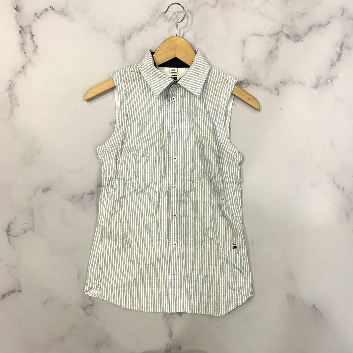 X ▼ 洗練されたデザイン!! 'ストライプ柄' G-STAR RAW ジースターロウ ロゴ ノースリーブ ボタン シャツ size:XS レディース トップス