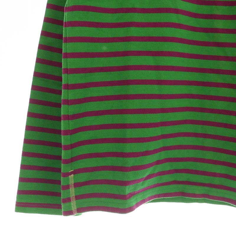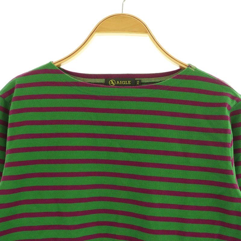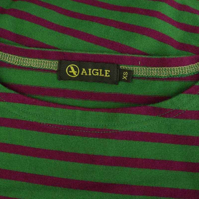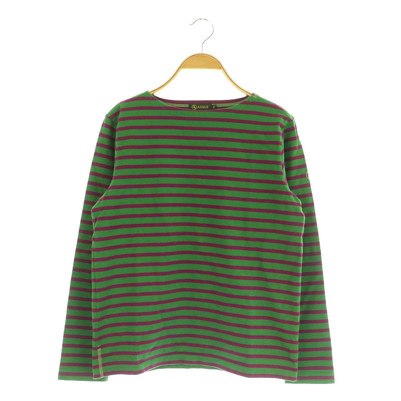 エーグル AIGLE コットンボーダーカットソー 長袖 ボートネック XS グリーン パープル /MY ■OS レディース