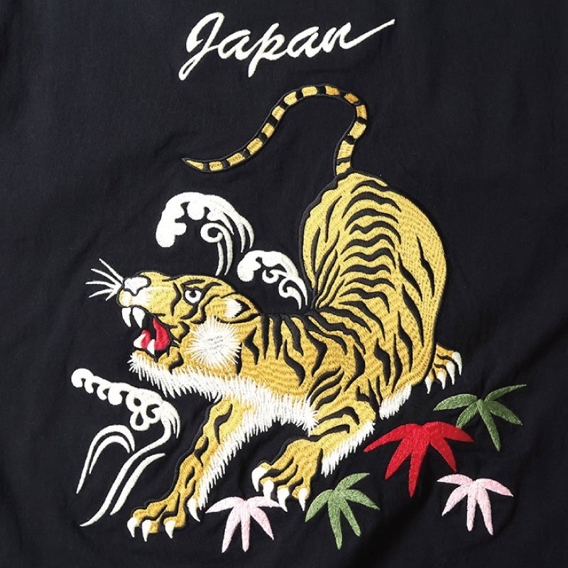 ヴィンテージスカジャンをサンプリングした虎柄刺繍デザイン。