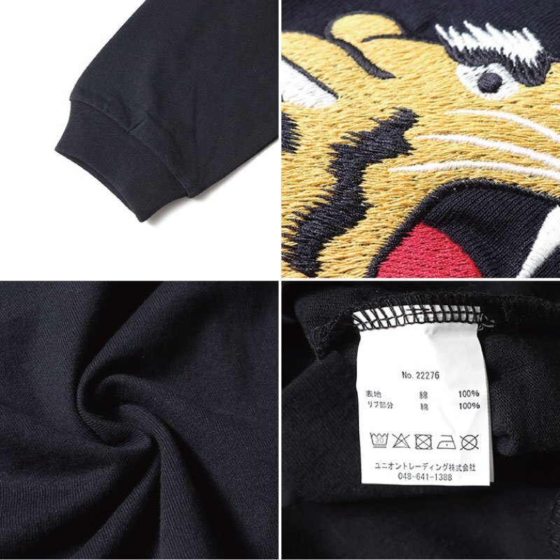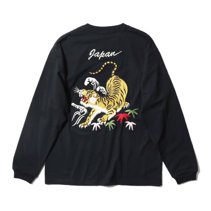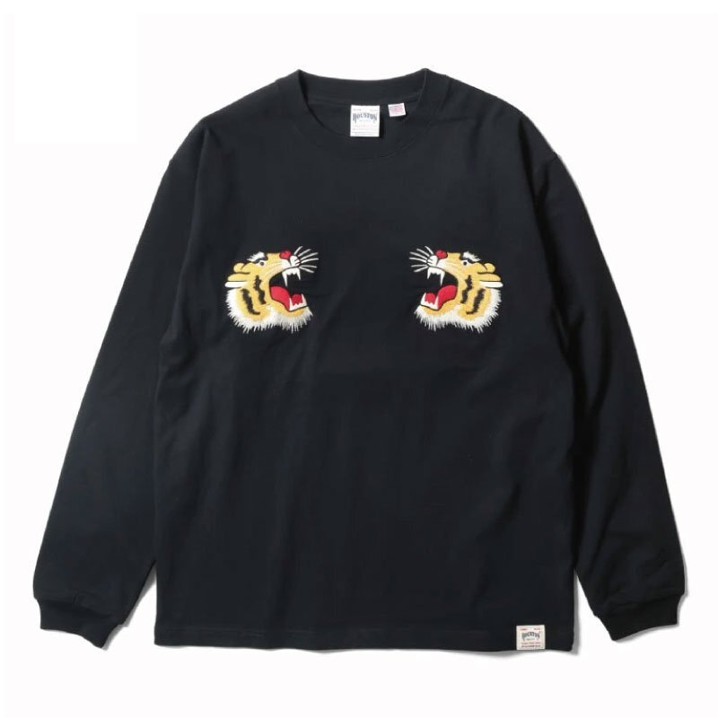 SALE セール 新品 HOUSTON ヒューストン 長袖Tシャツ ロングスリーブ ロンT 和柄 虎 刺繍 スカジャンデザイン L ブラック 黒