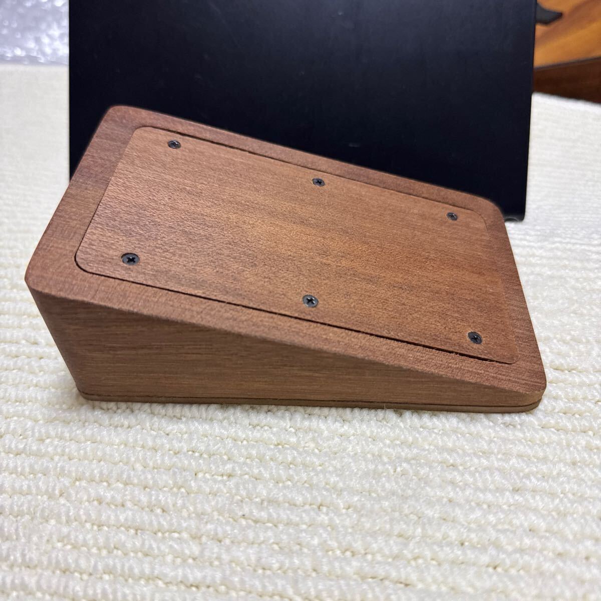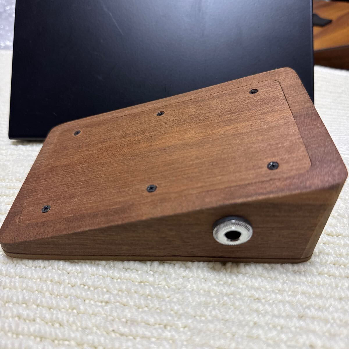 木箱の中にピエゾ・ピックアップが内蔵されていて、木箱に衝撃を与えるとその振動を拾って出力するという仕組みです。