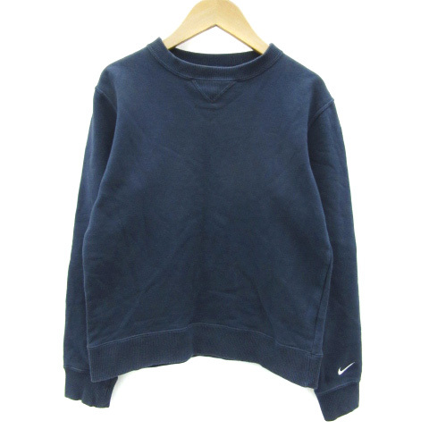 ナイキ NIKE トレーナー 長袖 無地 刺繍 M ネイビー 紺 /YM23 レディース