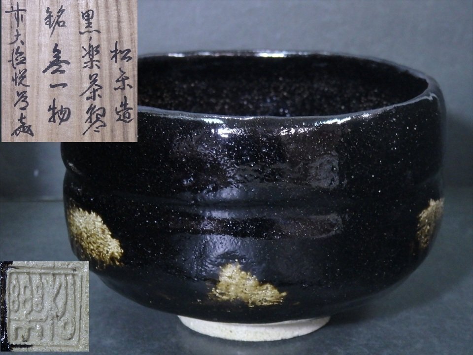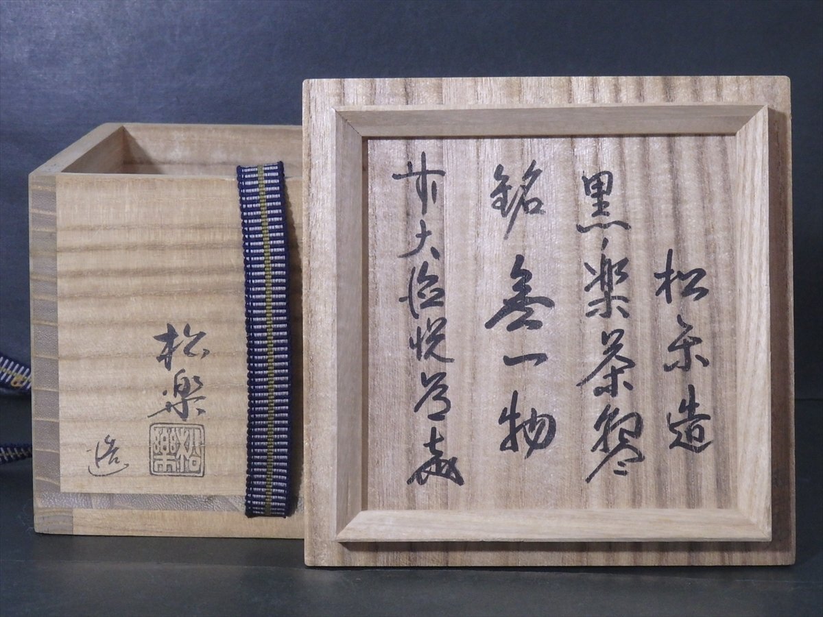 ★状態良好!佐々木松楽造【黒楽茶碗 共箱】大徳寺 高橋悦道和尚 書付 本来無一物 茶道具 京焼 茶器 楽焼 抹茶碗 セール!
