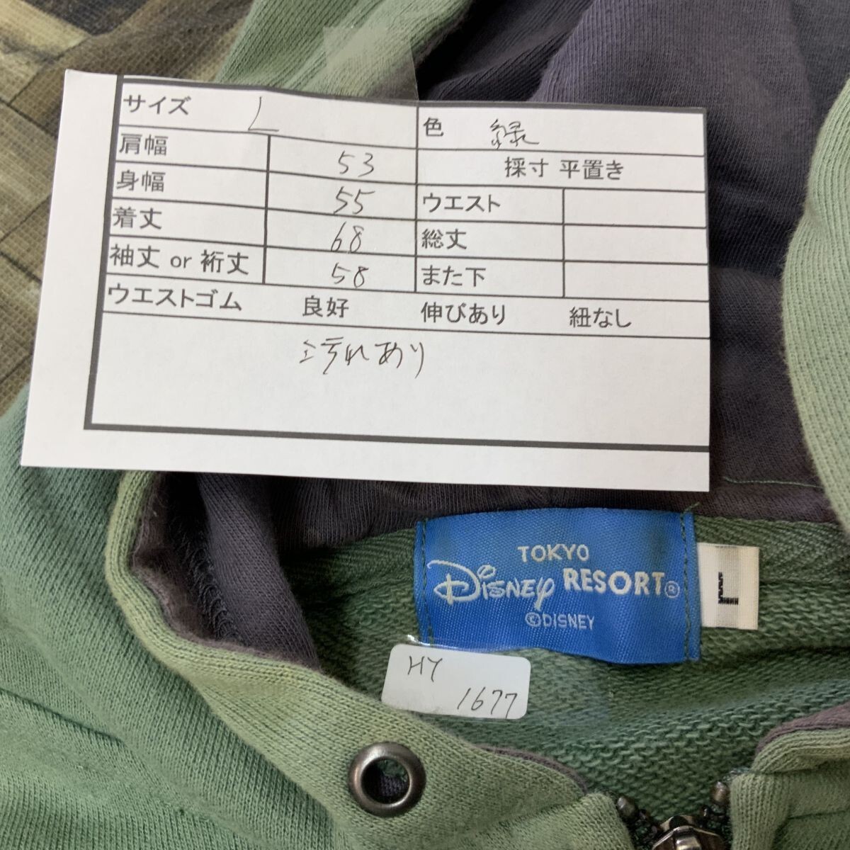 HY1677 オフィシャル 東京ディズニーリゾート パーカー グリーン L 背面プリント