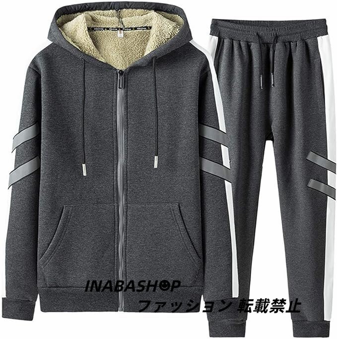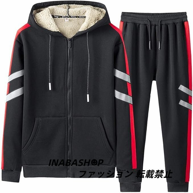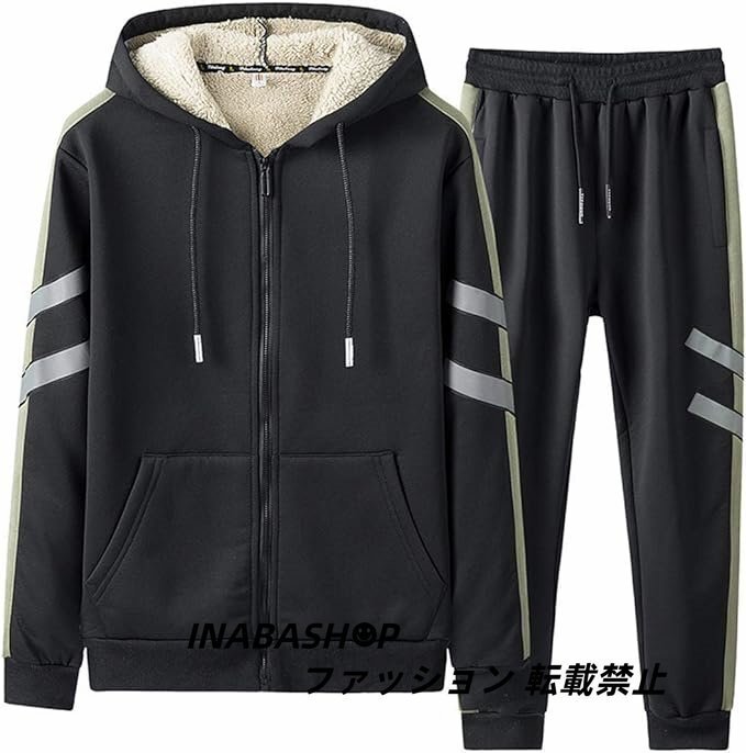 冬 裏ボアパーカー セットアップ メンズ ジャージ点セット ジップ スウェット 裏起毛 トレーナー フード付き スポーツジャン 厚手 防寒