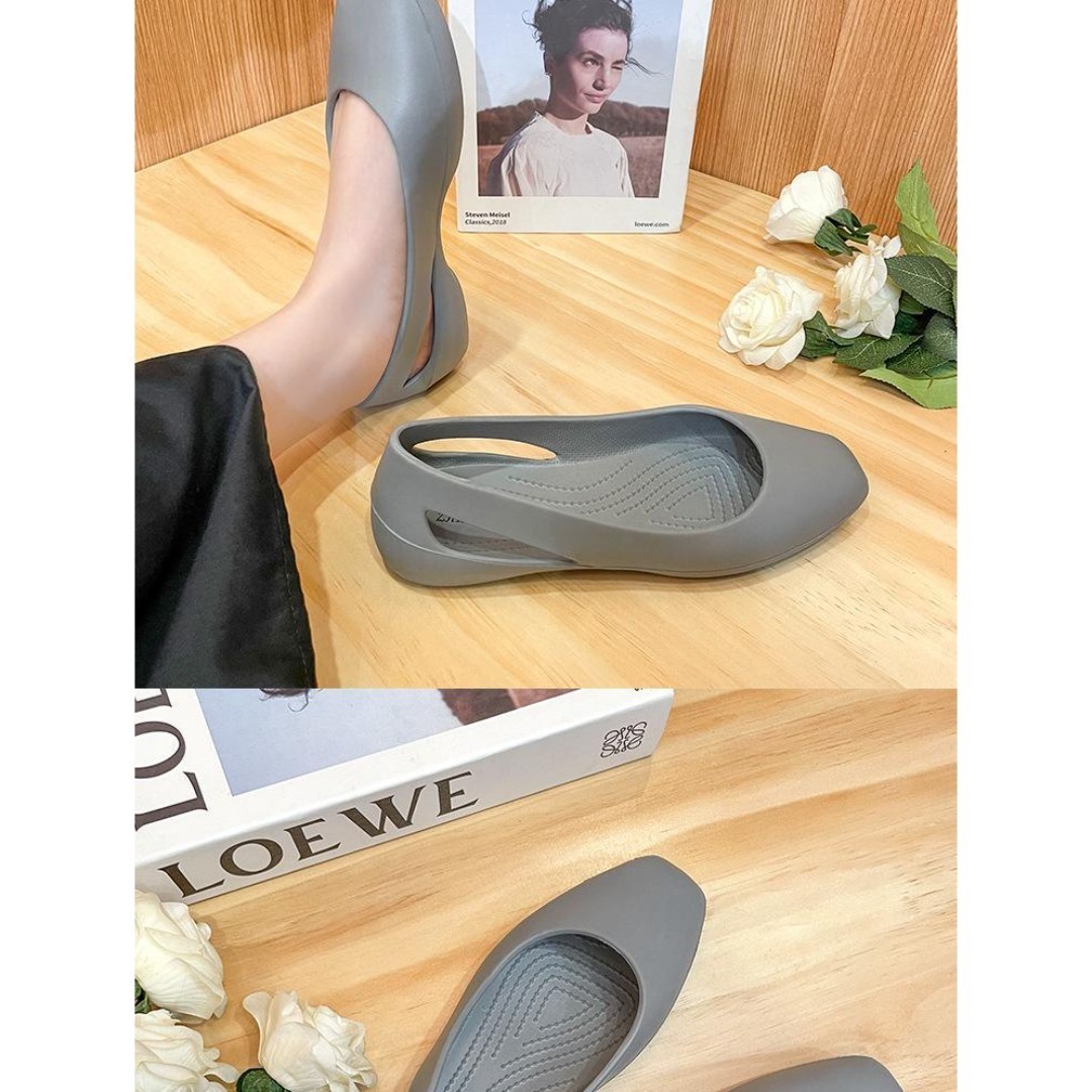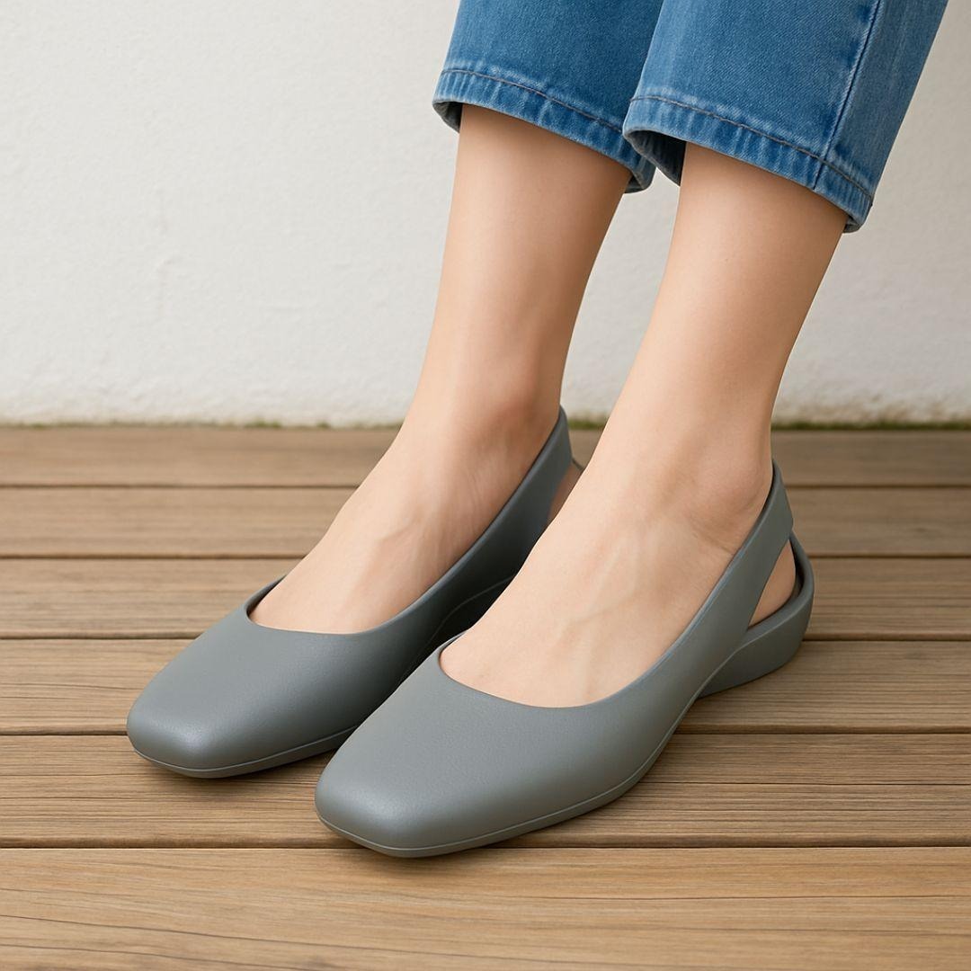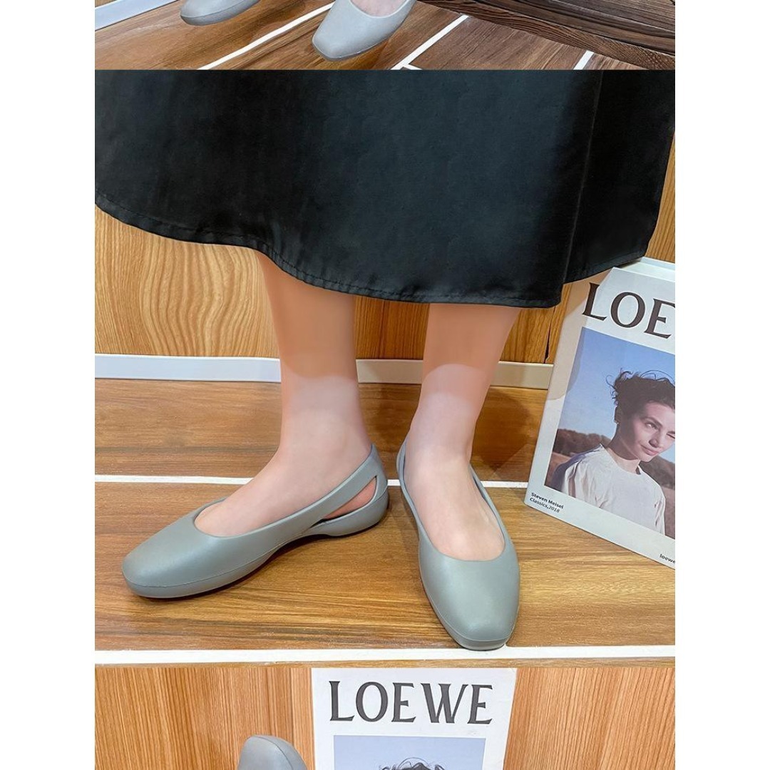 デザイン:スクエアトゥ、フラット、スリングバック