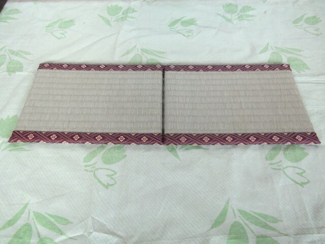 ★商品説明★ | *手作りミニ畳です。一枚当たりのサイズ25.8cm×18.3cm×1cm(B5サイズ) *2枚セット販売です。 *ミシンで縫った物やタッカービス止めの物とは違い、畳職人さんが昔ながらの技法でひと針ひと針、畳針と畳糸で作った匠の逸品です。 *畳屋さんに頼んでも、機械化になった昨今、この様な商品がこの様な価格での入手は困難です。 *即決ですので早い者勝ちです。 *天然い草だけを使用し、しっかりとした作りです。 *芯には、い草ござを縦方向に入れて、3枚貼りにして、強度を付け縫製しています。 *写真3枚目は裏面です。 *商品の良し悪しは、評価覧でご判断下さい。 *他にも出品しています。御覧下さい。 |