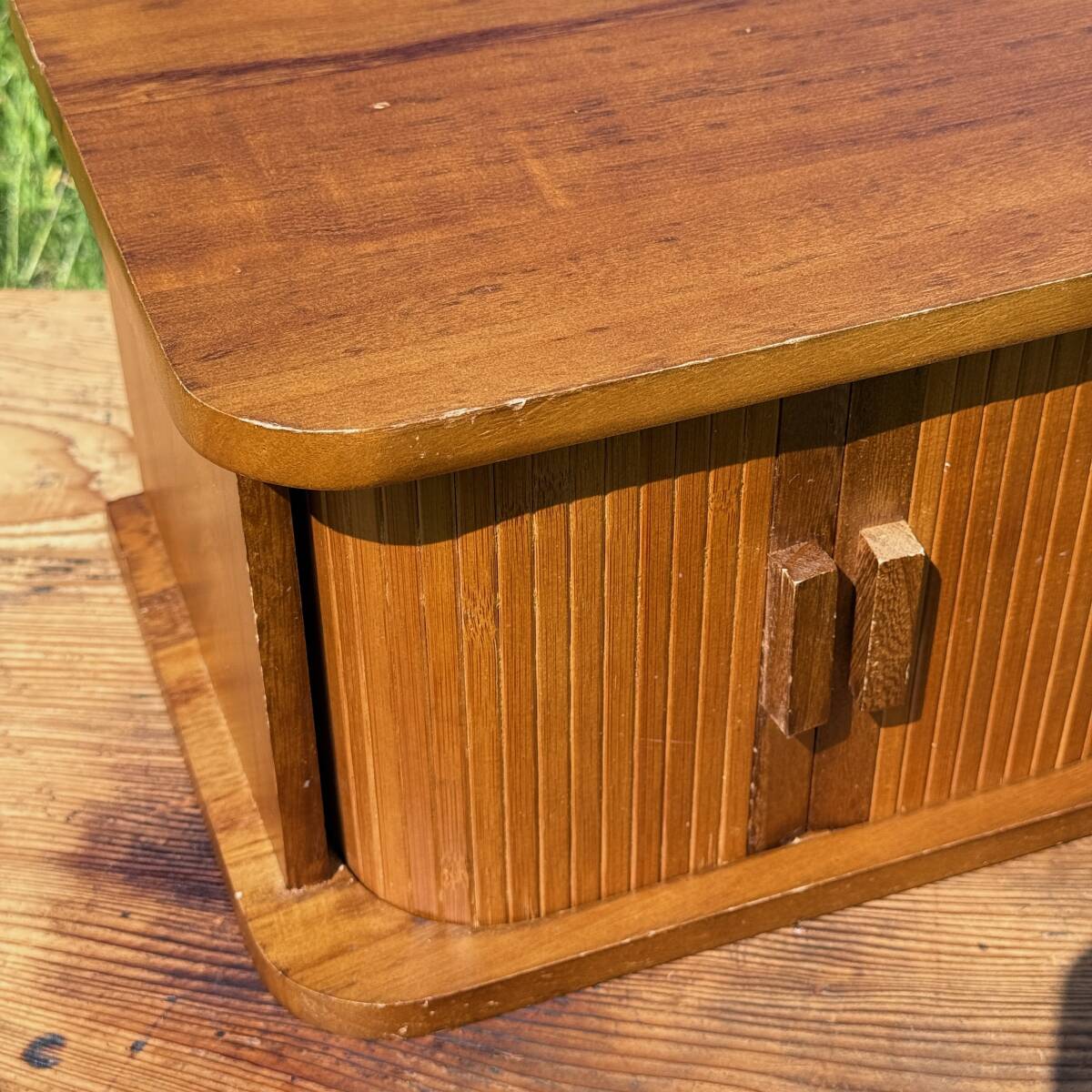 ビンテージ 北欧風 蛇腹シャッター ロールフロント ウッドボックス 卓上ラック 小物入れ 幅30㎝ 奥行き22.5㎝ 高さ19㎝