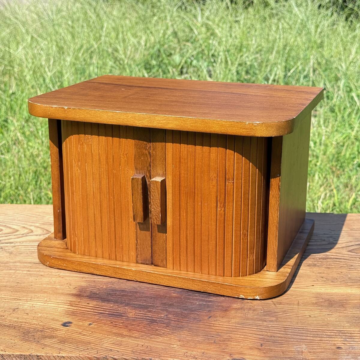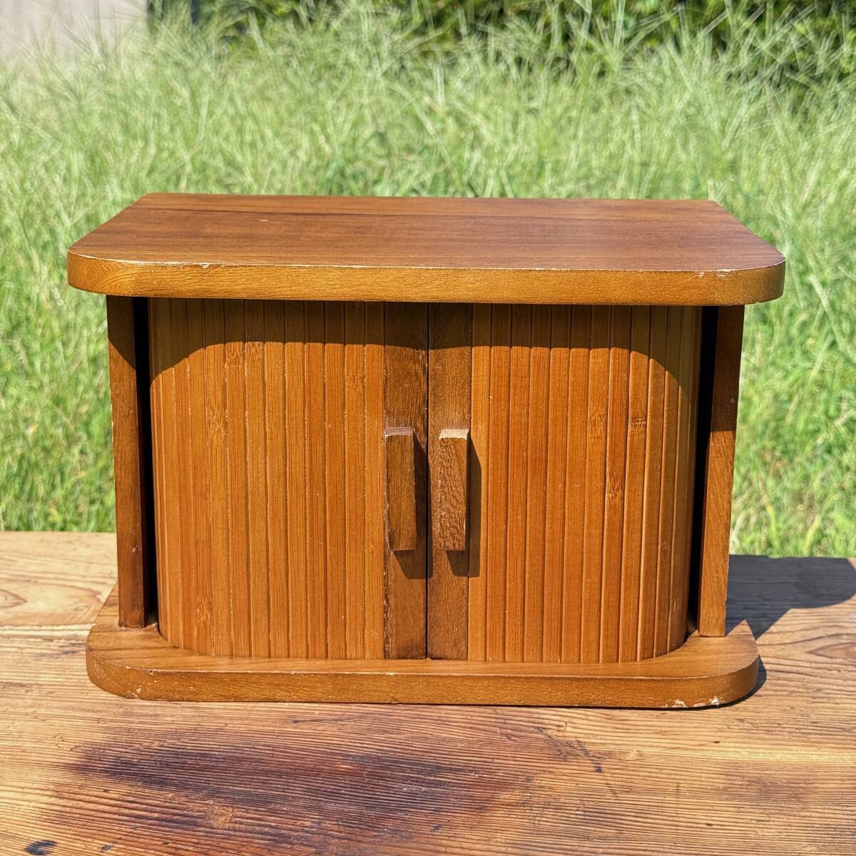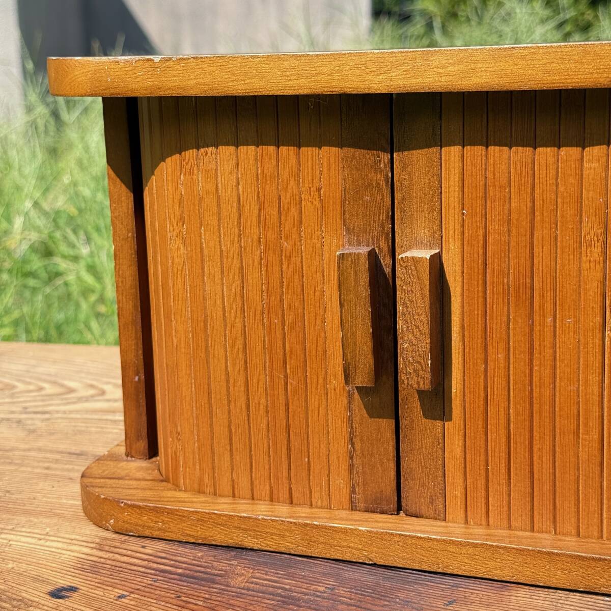 ビンテージ 北欧風 蛇腹シャッター ロールフロント ウッドボックス 卓上ラック 小物入れ 幅30㎝ 奥行き22.5㎝ 高さ19㎝