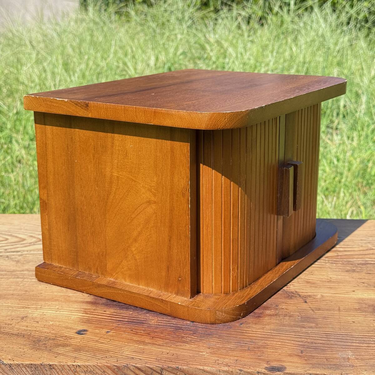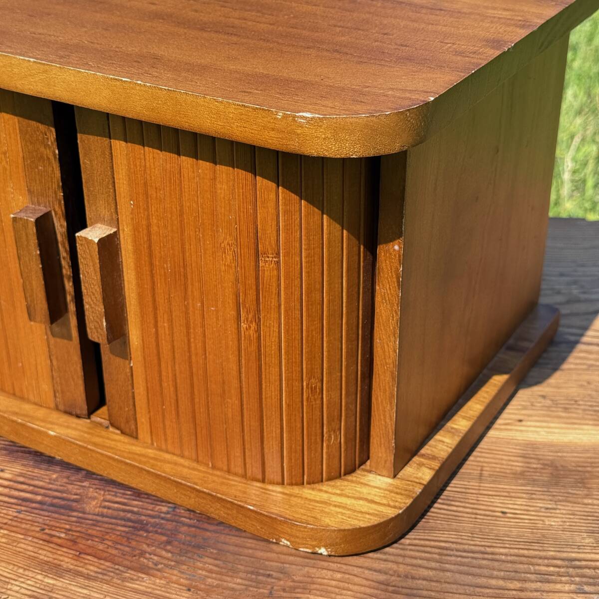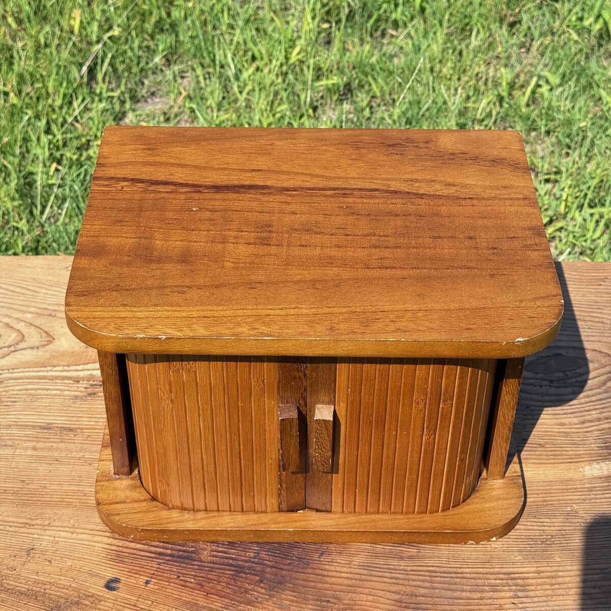 ビンテージ 北欧風 蛇腹シャッター ロールフロント ウッドボックス 卓上ラック 小物入れ 幅30㎝ 奥行き22.5㎝ 高さ19㎝