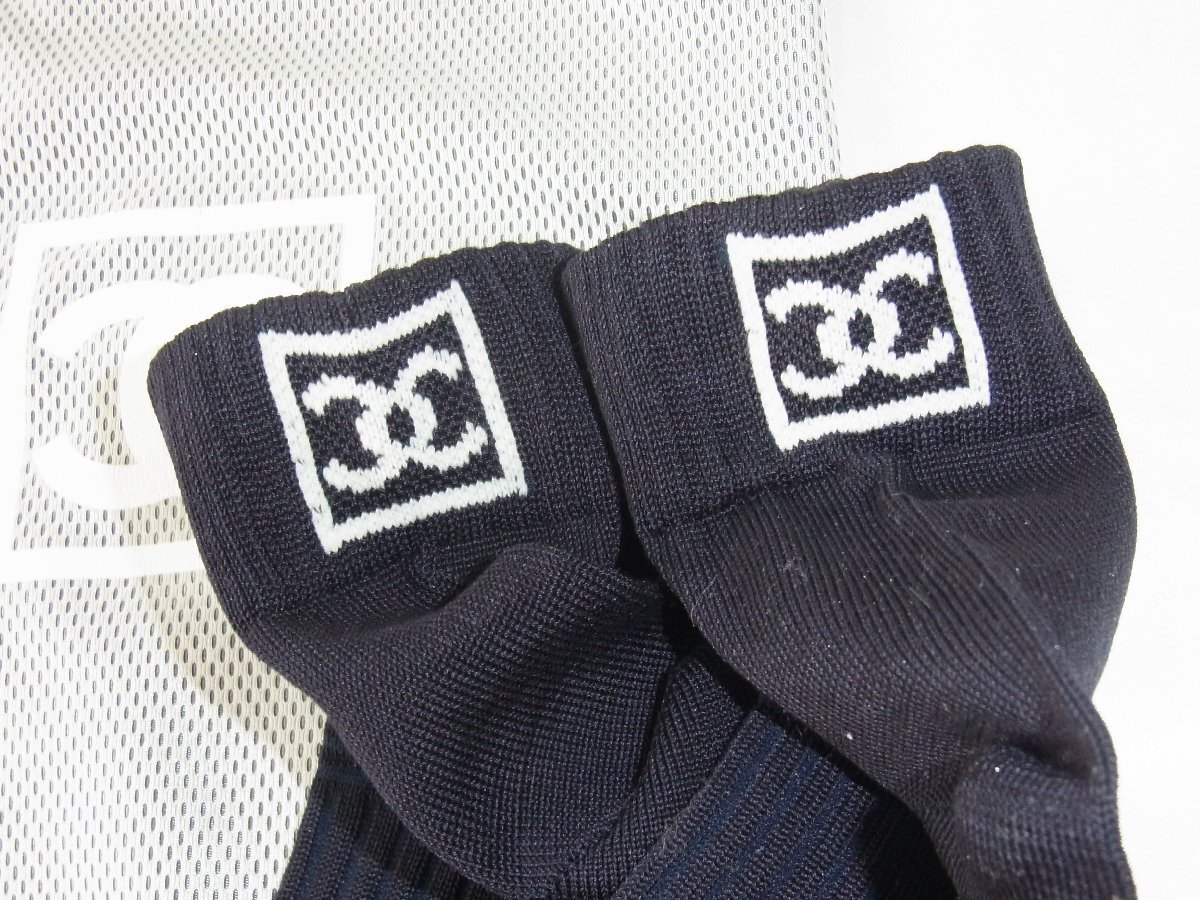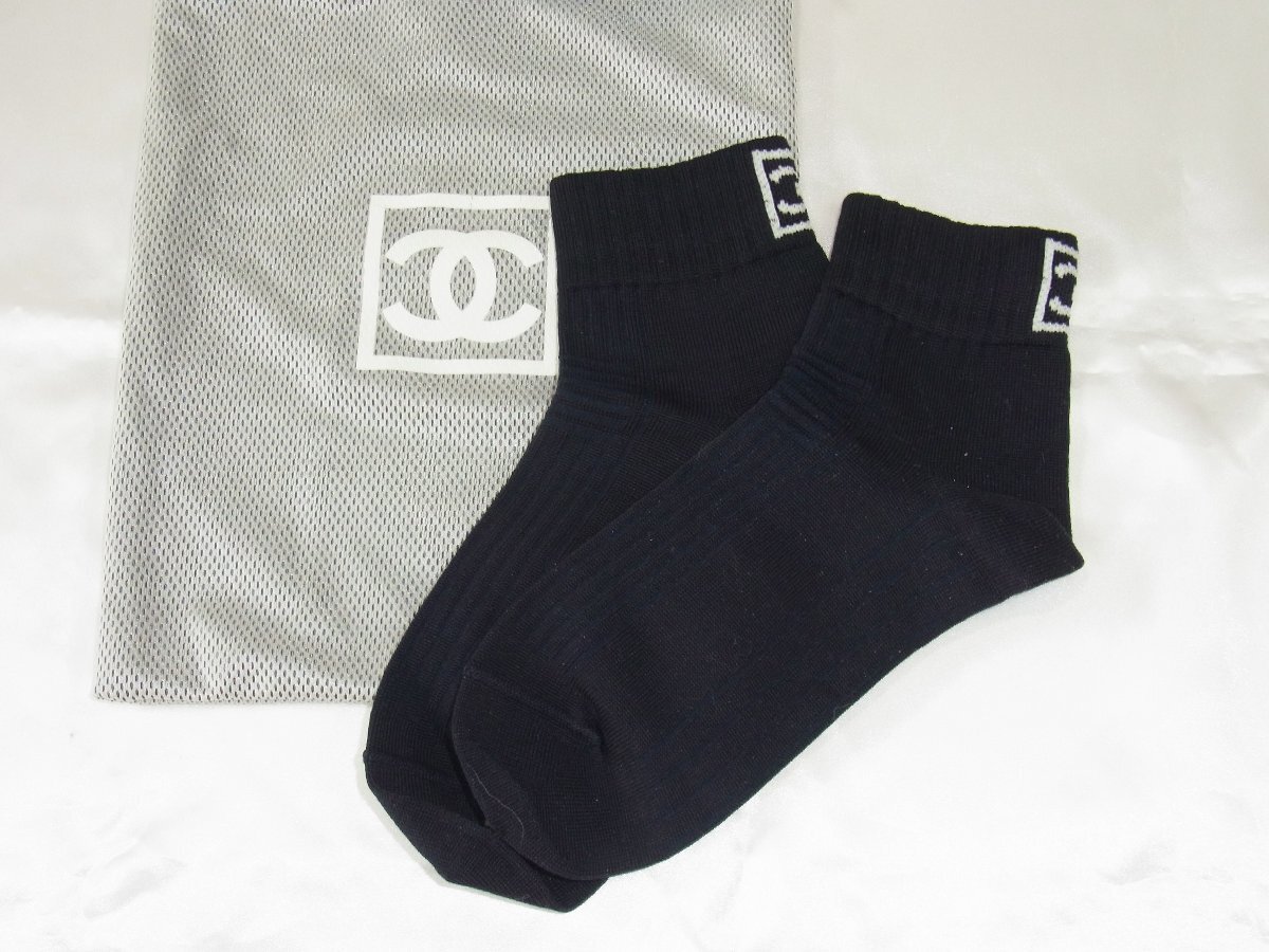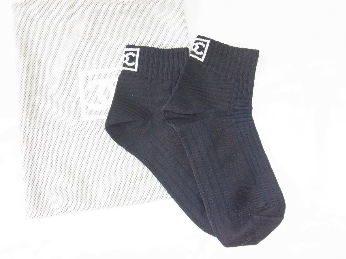 | シャネル CHANEL ソックス 靴下 Sサイズ 黒 コットン 未使用美品 | |