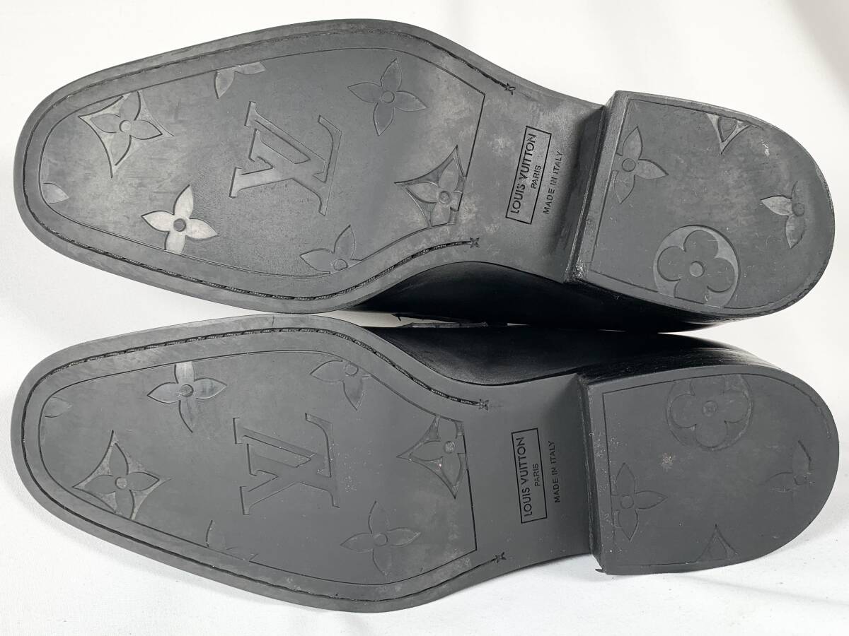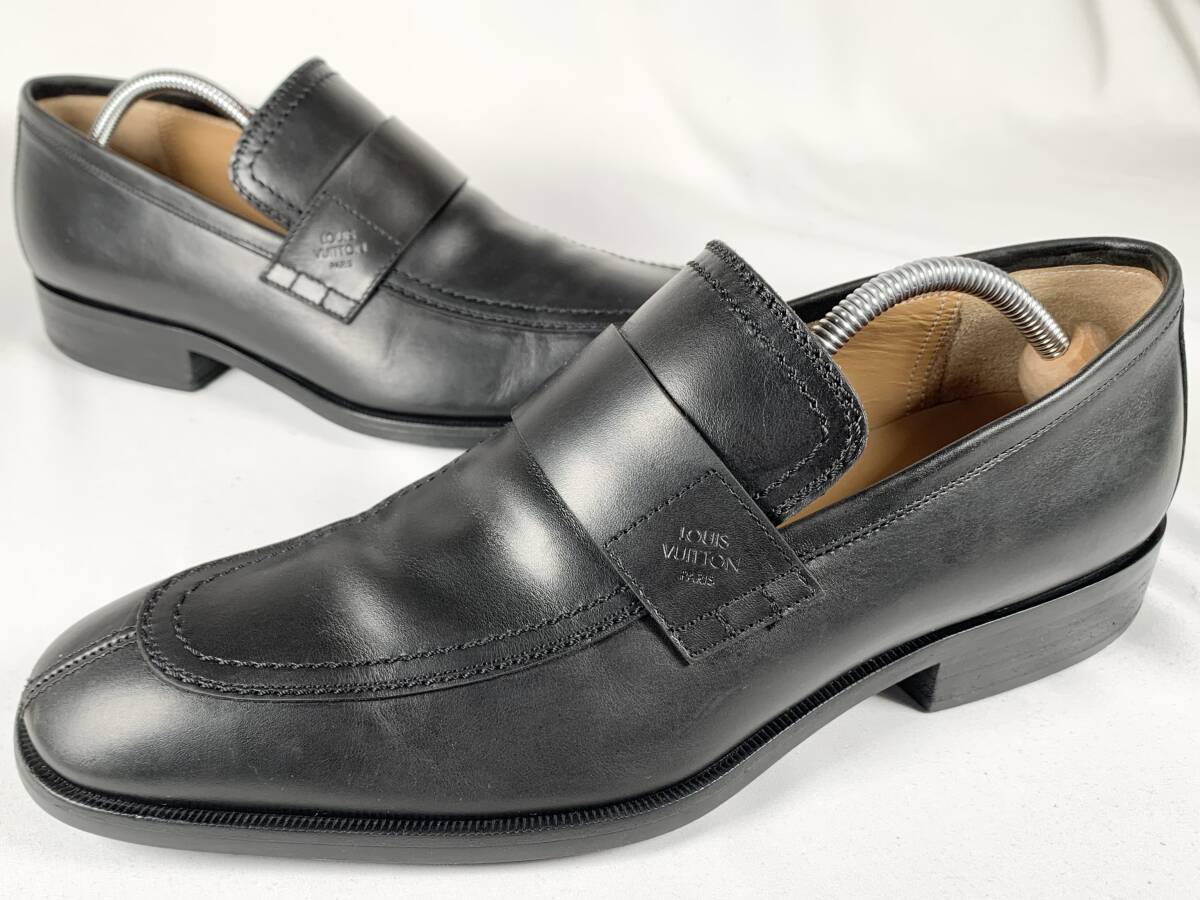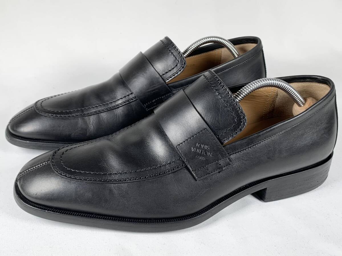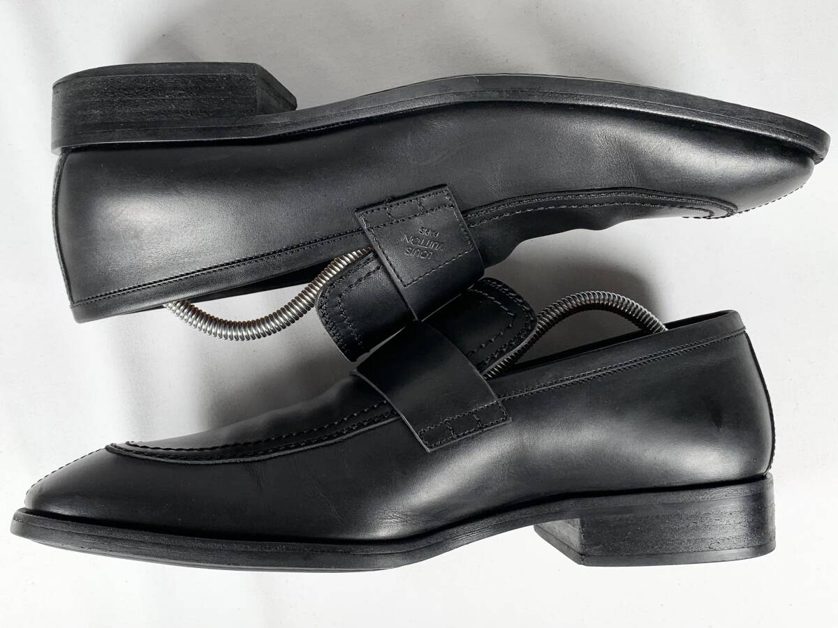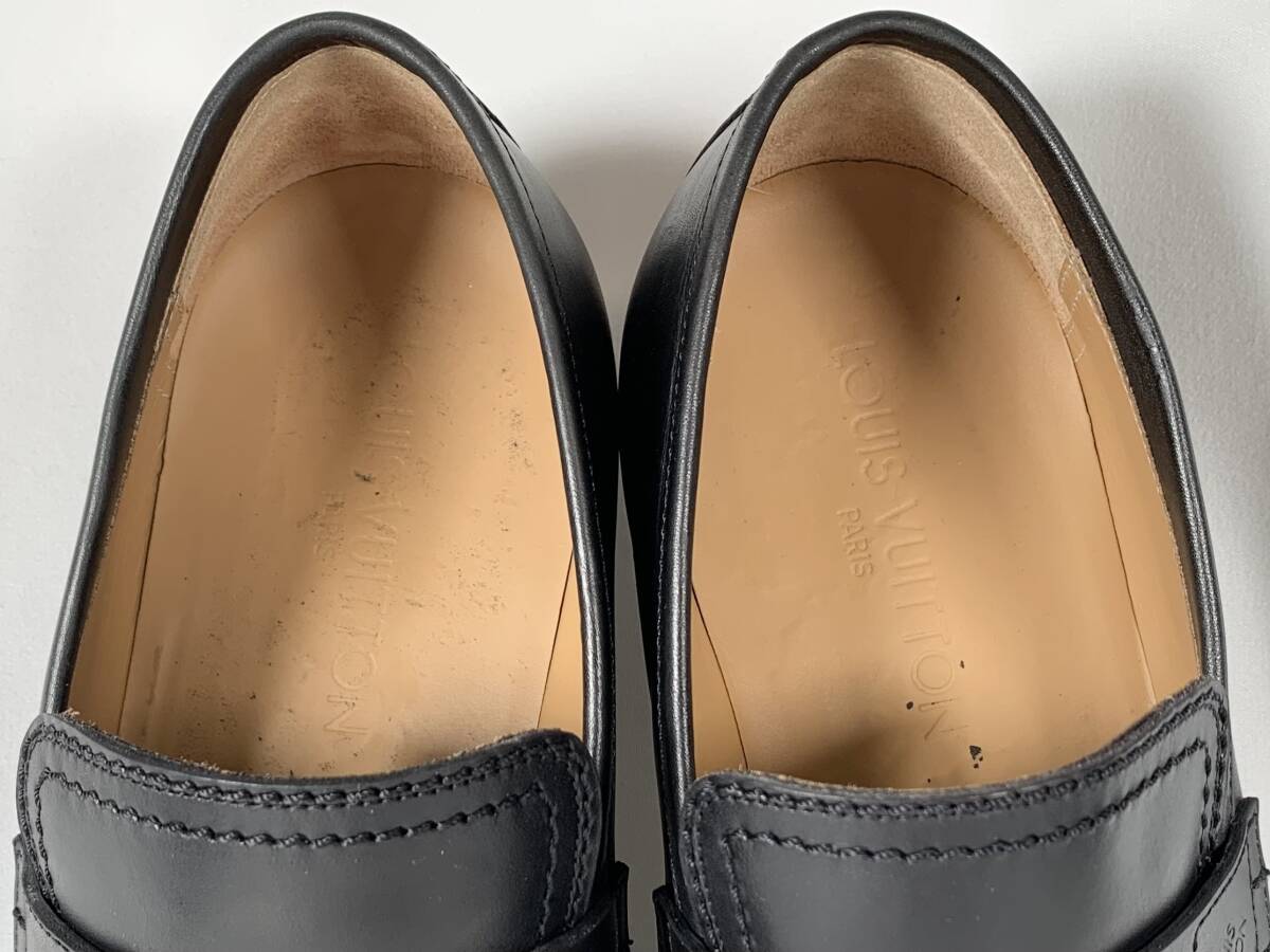 【正規】美品 ルイヴィトン LOUIS VUITTON モノグラム LVロゴ レザー ローファー ビジネス ドレス シューズ 革靴 メンズ 7 1/2 黒 ブラック