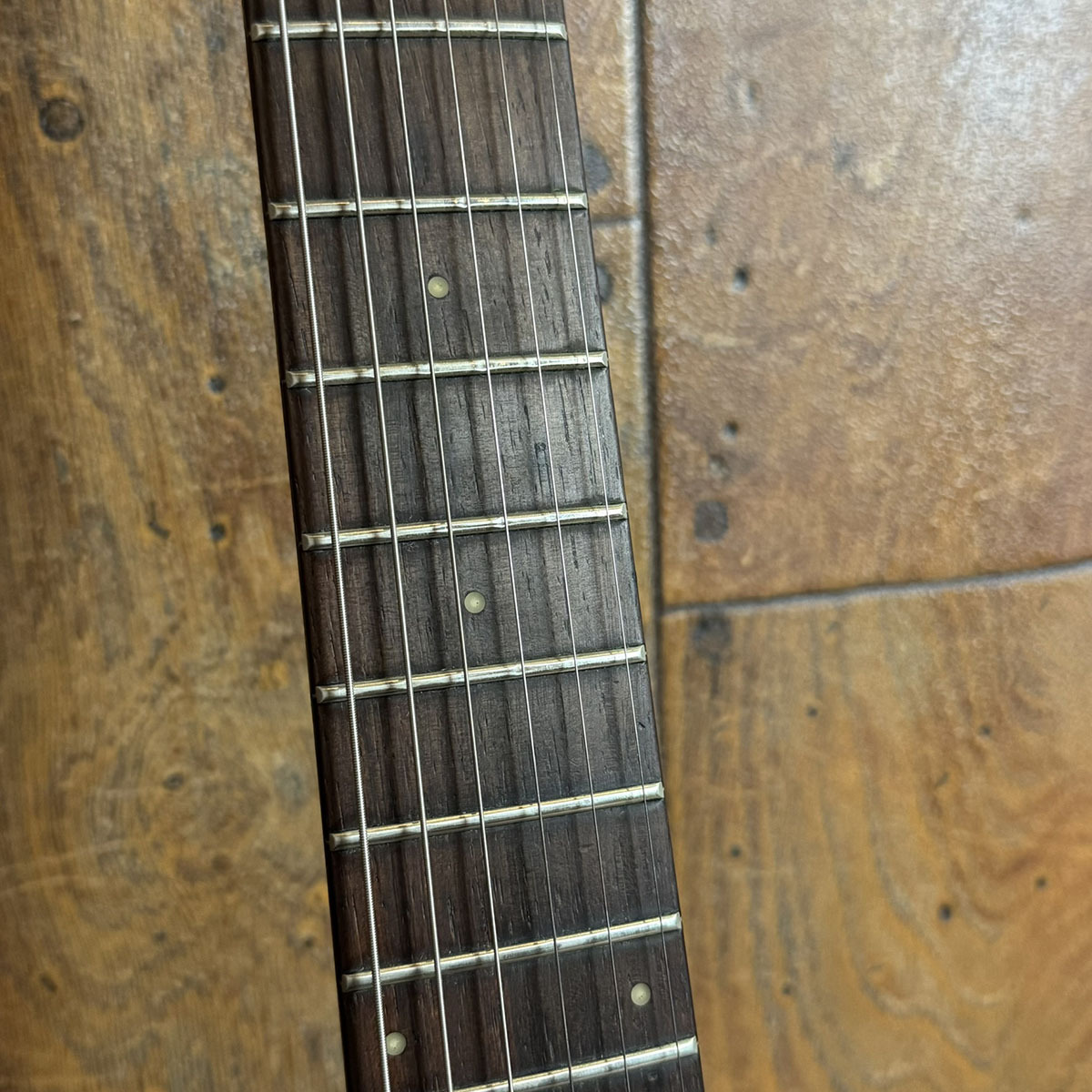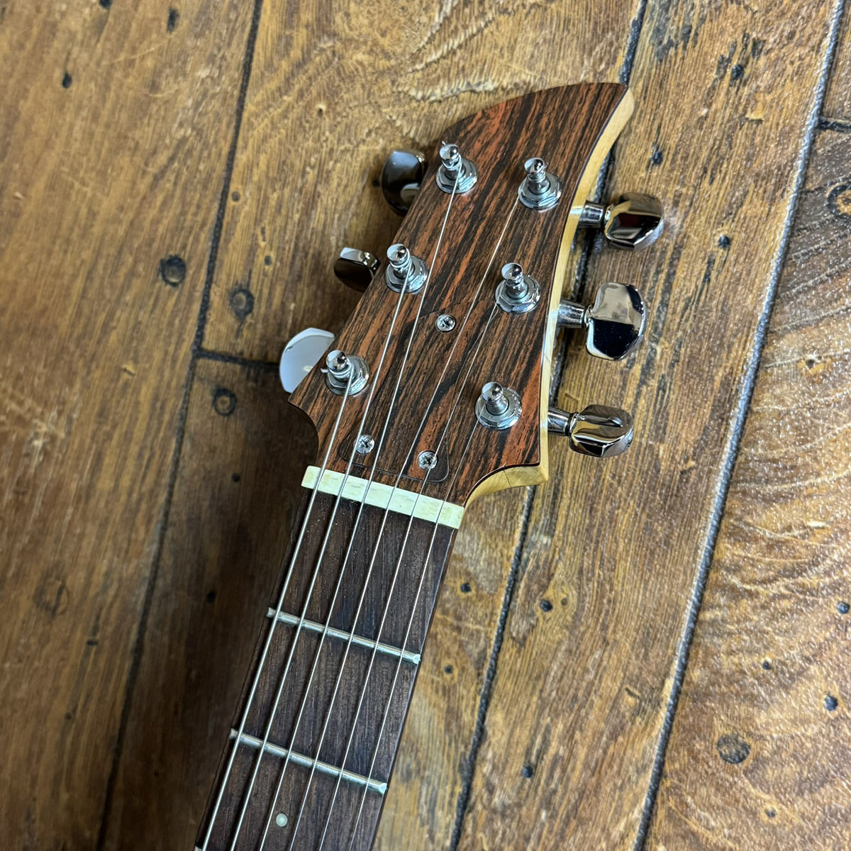 しっかりとしたグリップ感のメイプルネック、魅惑のハカランダ指板です。