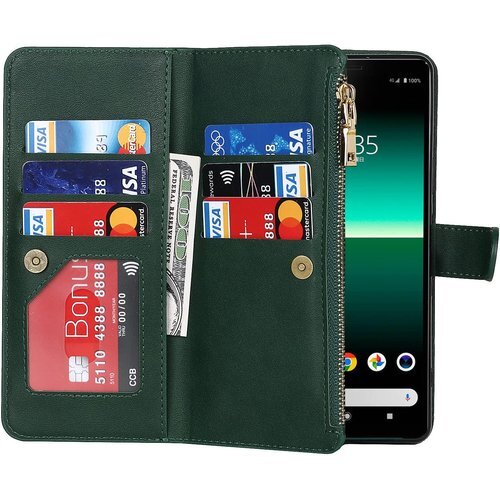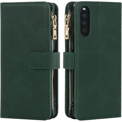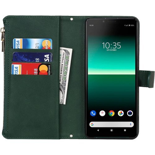 for Xperia 10 II ケース ソニー for Sony エクスペリア 10II SO-41A 縄掛けケース 手帳型 財布型 ICカード コインポケット ストラップ付き カード 収納 小銭入れ ファスナーポケット付き PUレザー 6色 グリーン