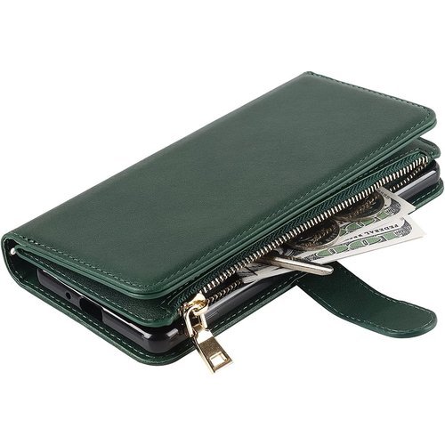 Eastwave for Xperia 10 II ケース ソニー for Sony エクスペリア 10II SO-41A 縄掛けケース 手帳型 財布型 ICカード コインポケット ストラップ付き カード 収納 小銭入れ ファスナーポケット付き PUレザー 6色 グリーン 461