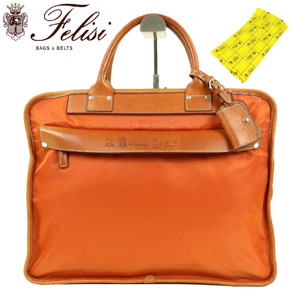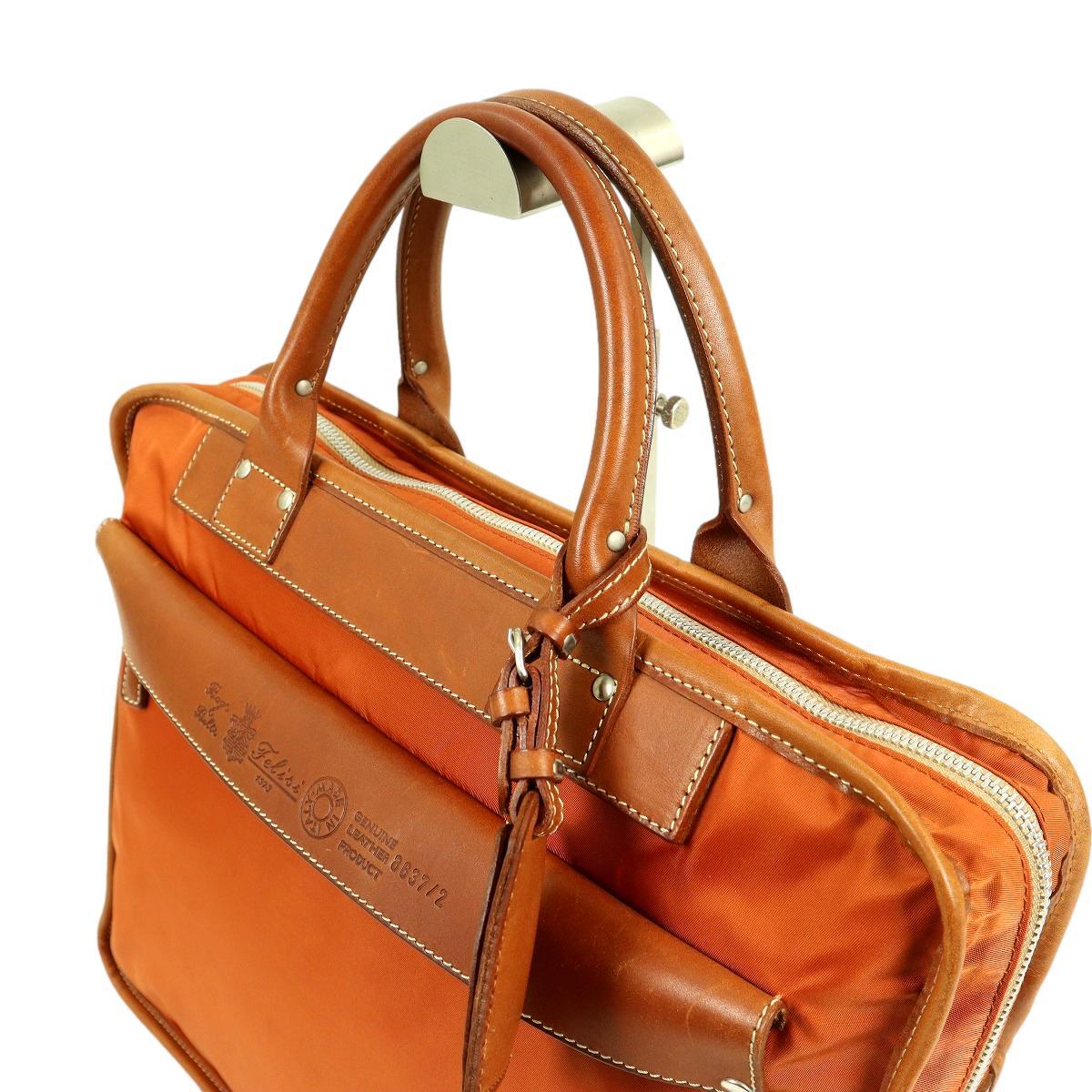 ブランド名:Felisi 横 :39cm 縦 :31.5cm マチ:10.5cm 色 :オレンジ 状態:多少薄汚れがございますが、比較的綺麗なお品物です(写真でご確認ください) ※状態の確認は慎重に行っておりますが、僅かな薄汚れや、キズ、糸飛びなどがある場合がございます、古着(中古品)にご理解いただける方のみ入札お願いいたします |