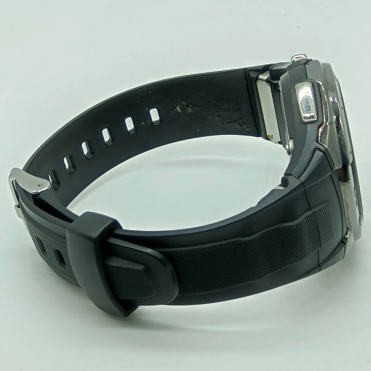接写写真を掲載しているので、周りの撮影道具・光・影等が写り込んでいる場合があります 又肉眼では見えない微傷等が誇張されている場合があります ★タフソーラー(ソーラー充電システム)太陽光はもちろん、蛍光灯などの光を動力に変換するカシオ独自のソーラー充電システム 太陽光で充電して順調に動いています *****腕周りを必ず確認の上ご購入下さいませ***** 化粧箱・取説・保証書・余りコマ等ありません、ベルトを含む本体のみです、写真が全てです ■状態(目視) ・文字盤・・・綺麗な状態です ・ガラス・・・キズが見られます ・ケース・・・微キズ・微スレ等見られますが、綺麗です ・裏蓋・・・取り切れないボンド跡がありますが、比較的綺麗です ・ベルト・・・取り切れないボンド跡がありますが、綺麗です 96時間動作確認済・精度良好です 発売・購入時期や販売価格・オーバーホール歴等不明です 発送時十分動作を確認して発送いたしますが、中古時計の為到着後の動作保証は出来ませんのでご了承下さいませ 中古品の為、現状の防水性はわかりません 突然出品を取り消す場合があります ■仕様 ケース素材:樹脂 ケースカラー:ブラック 文字盤カラー:ブラック ケースサイズ(約):W42.0mm(リューズ含まない)×H55.7mm(ラグ含む) 厚み:約13.6mm ベルト幅:約22.6mm 腕周り:約21.0cm以下 重さ:48g 497 | |||